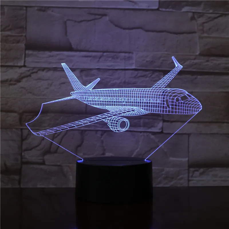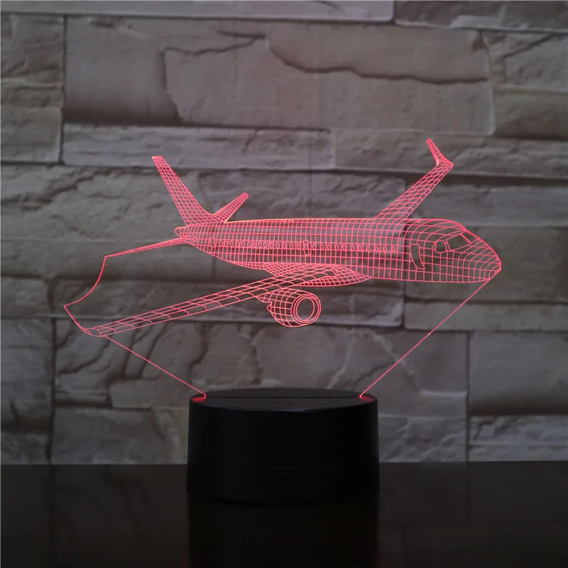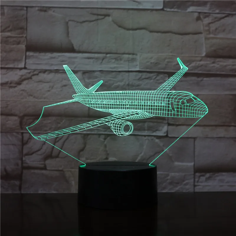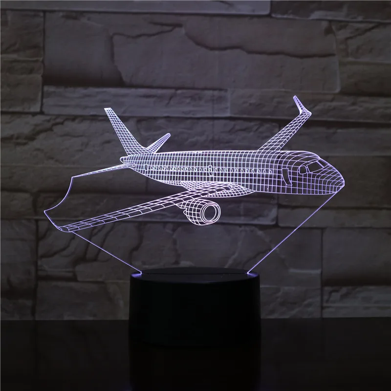 Новинка, 3D настольная лампа в форме самолета, иллюзия, визуальное освещение детский Ночной светильник светодиодный светодиодные светильники, светильник для украшения спальни, дома Вечерние