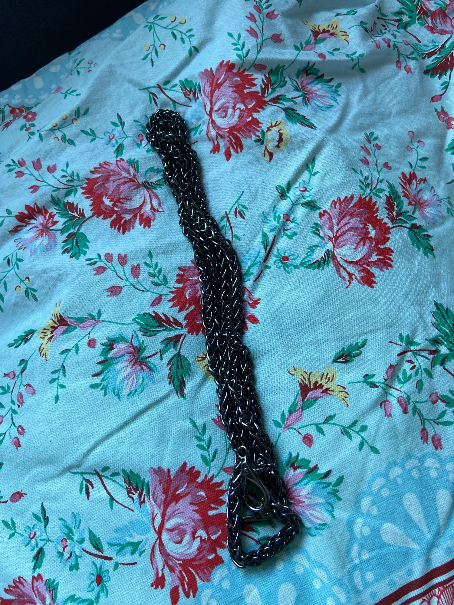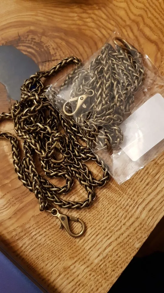 Цепочка достаточно толстая и крепкая. Подойдет для небольшой кожаной сумки. Для бархатной вечерней великовата