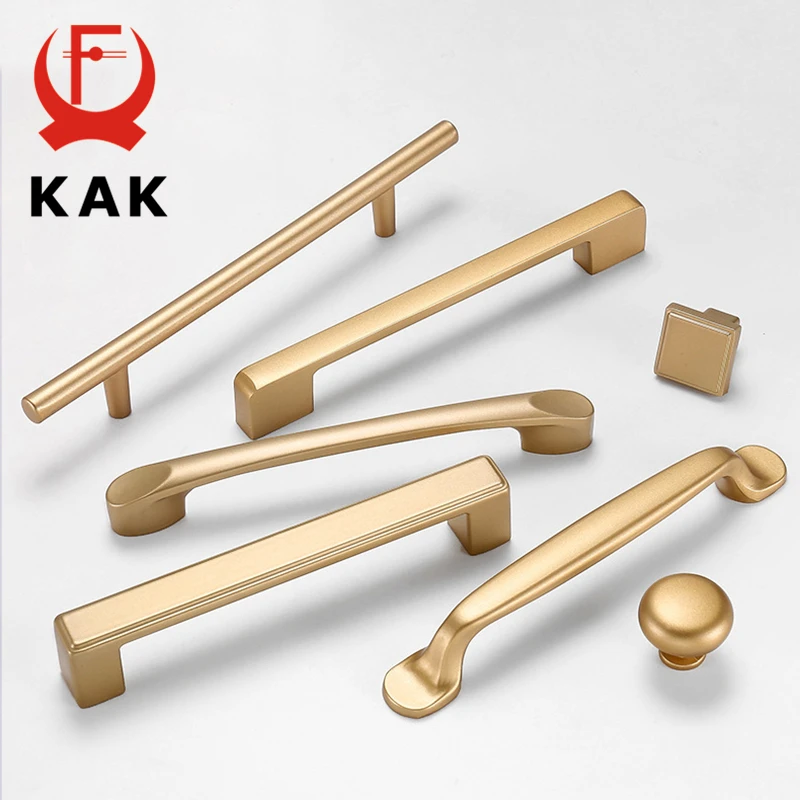 KAK, матовая золотая для шкафа, ручки, твердый алюминиевый сплав, кухонный шкаф ручки для выдвижных ящиков оборудование для обработки мебели