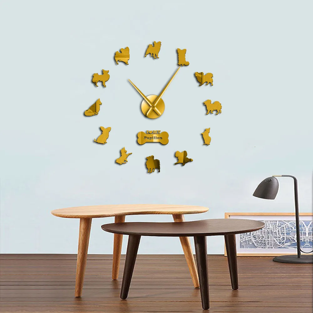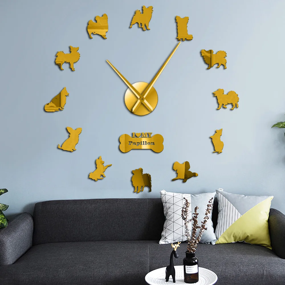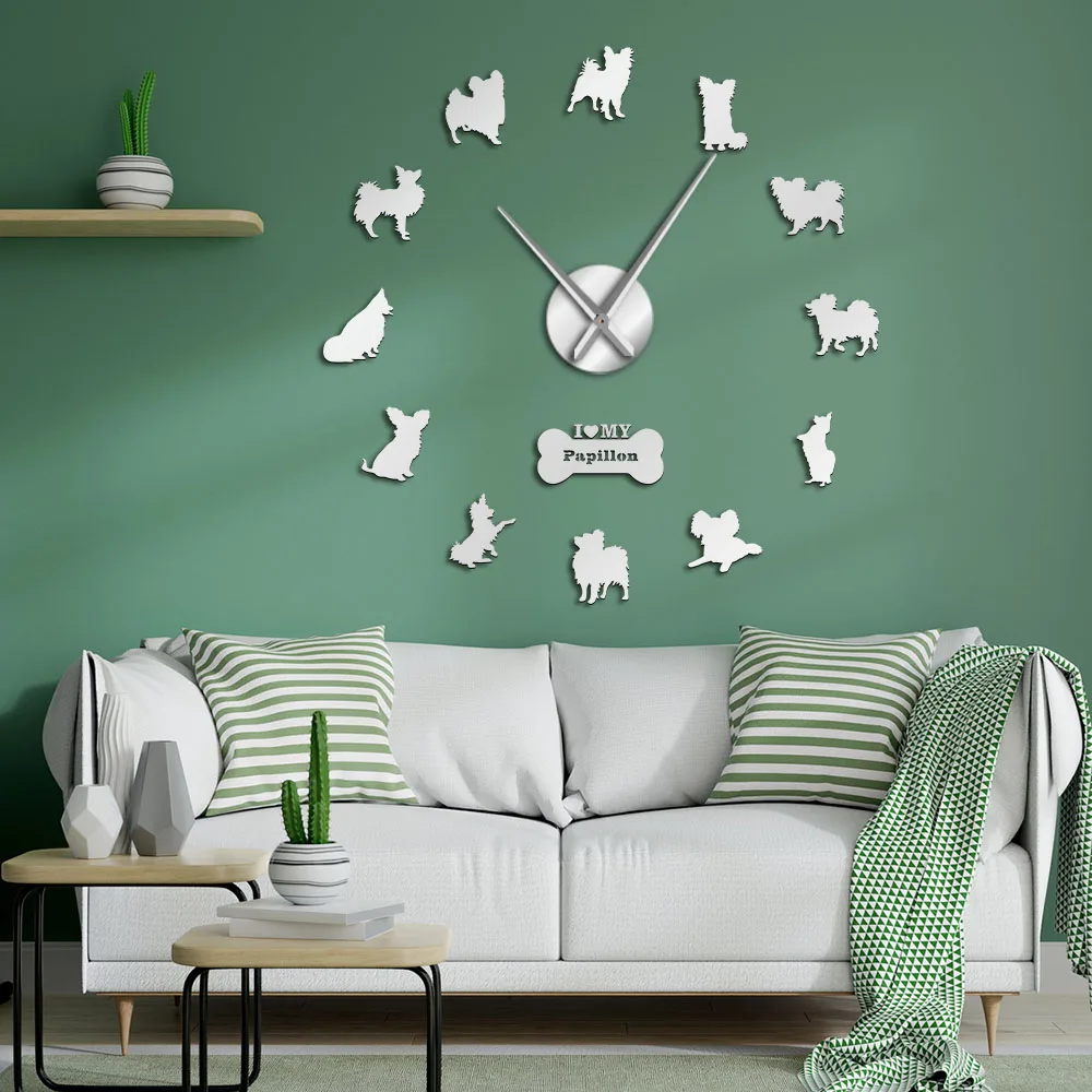 Континентальная игрушка спаниель Папильон собака Настенная Наклейка без рамки большие современные DIY настенные часы подарок на новоселье для владельцев собак