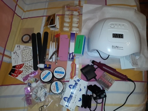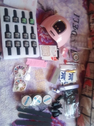 Посылка шла два месяца из Китая в Украину. Набор полный, цвета те, которые просила, инструменты не сломаны. Лаки по консистенции разные, некоторые густые, некоторые более жидкие. Одна база и один из лаков протекли, но не критично, вылилось чуть-чуть. Фрезер работает, лампа тоже, все лампочки светятся, но сушит очень долго. Делаю маникюр с лампой первый раз и в теме ногтей очень новичок, но как по мне, если хотите попробовать, поиграть, поэкспериментировать - берите. За такую цену очень хороший набор, много лаков, наклейки, камешки и ещё куча всего - твори и вытворяй сколько хочешь. Мне понравилось, к продавцу претензий нет, все отправил, хорошо упаковал, так что Спасибо Вам большое!