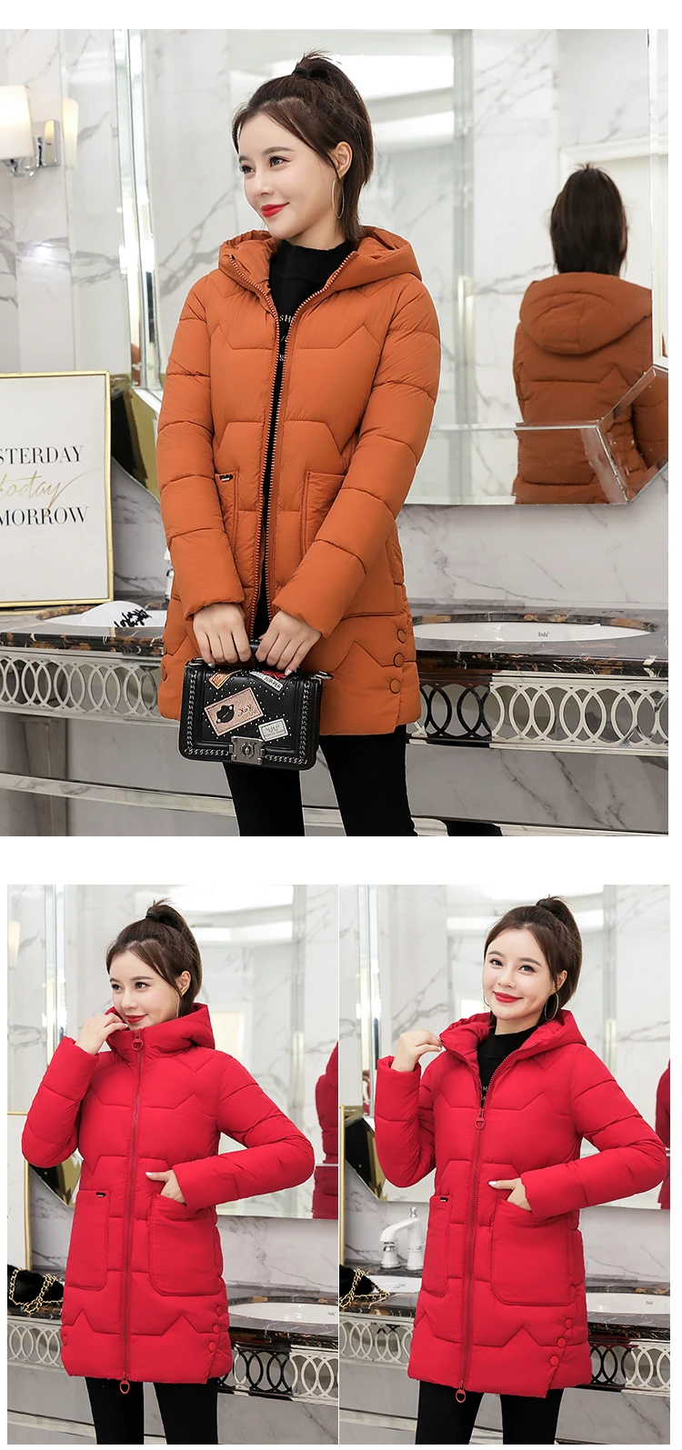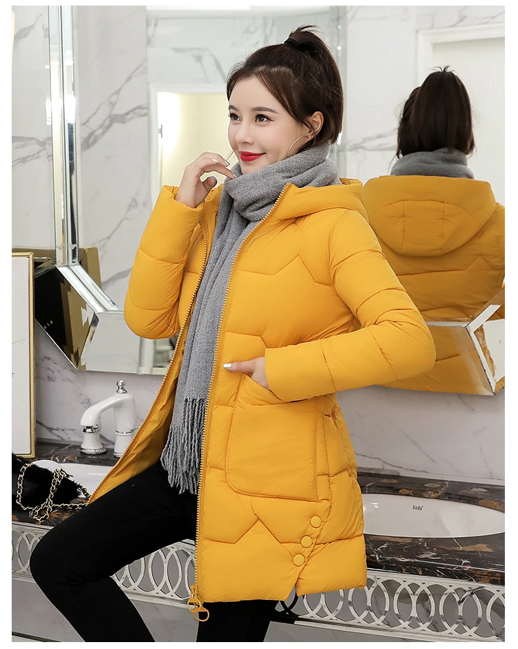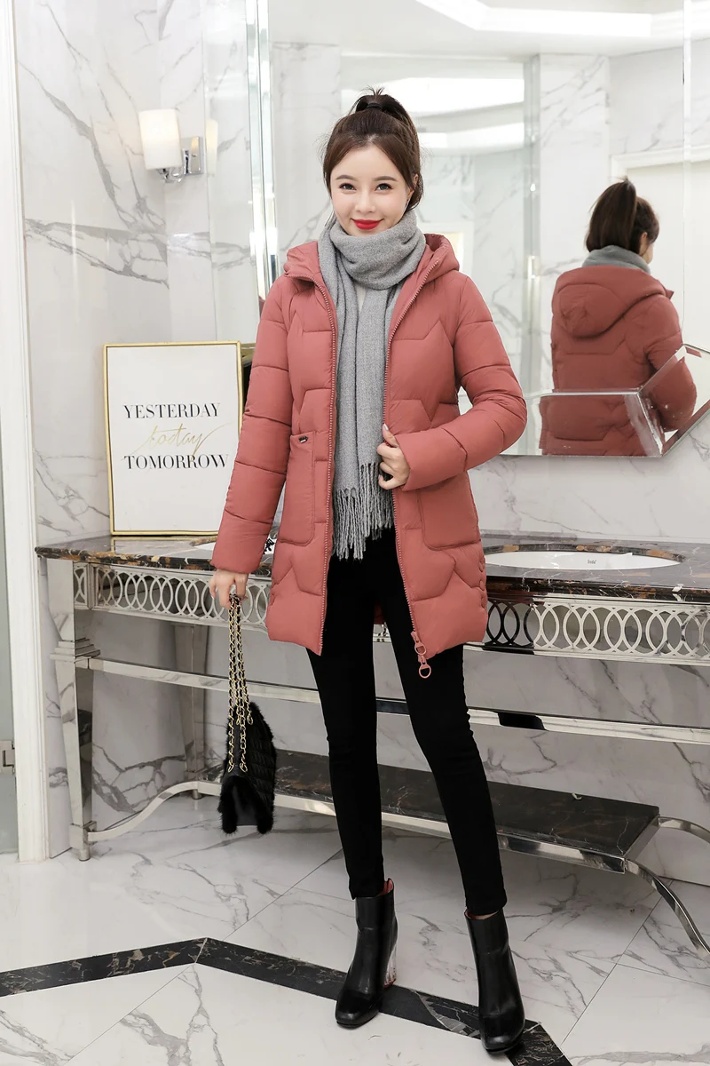 Женская куртка с капюшоном, зимняя облегающая длинная куртка из хлопка, студенческое пальто, парка для женщин, 2021
