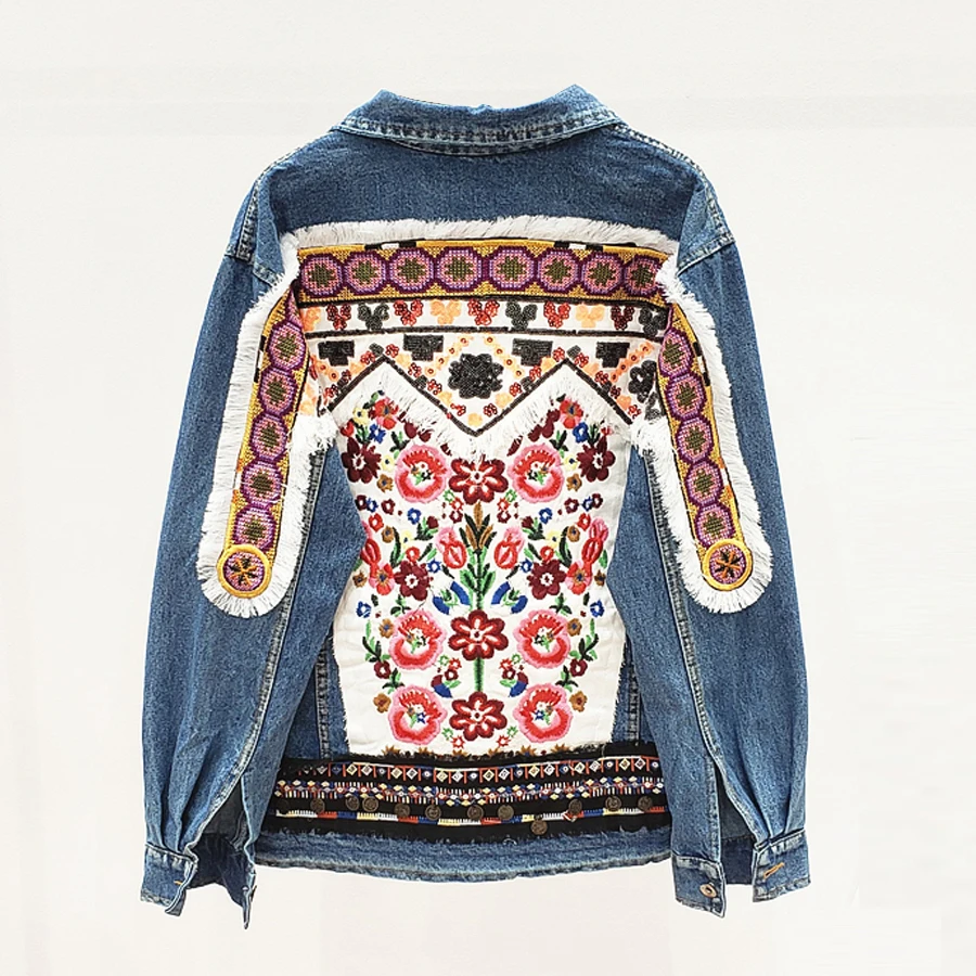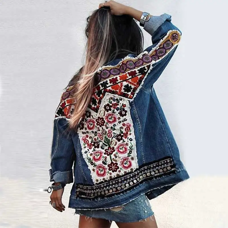 Женская джинсовая куртка Gypsylady, хлопковая куртка с цветочной вышивкой в стиле ретро, куртка с аппликациями в стиле бохо, верхняя одежда из денима с длинным рукавом