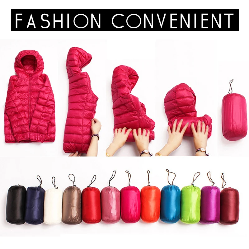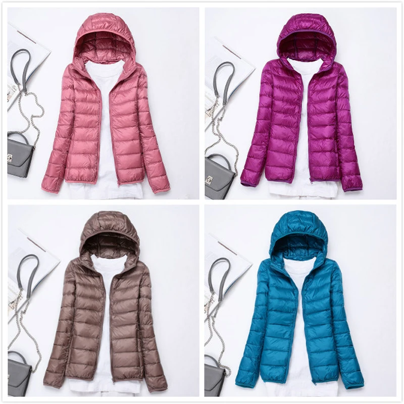 Куртка женская зимняя на 90% белом утином пуху, легкая, теплая, с длинным рукавом, приталенная, с капюшоном, размера плюс 7XL