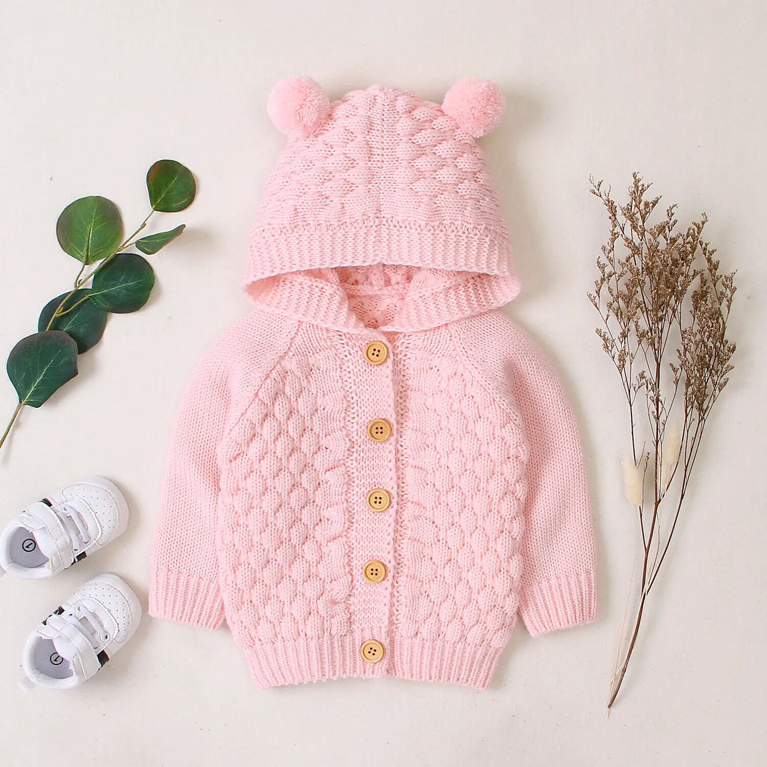Пальто для маленьких девочек от 3 до 24 месяцев осенне-зимняя теплая верхняя одежда с капюшоном и пуговицами, Куртка Топы с помпонами