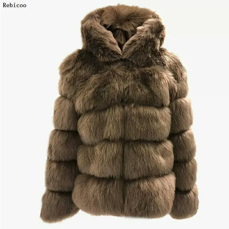 Зимнее женское толстое теплое пальто с капюшоном из искусственного ...
