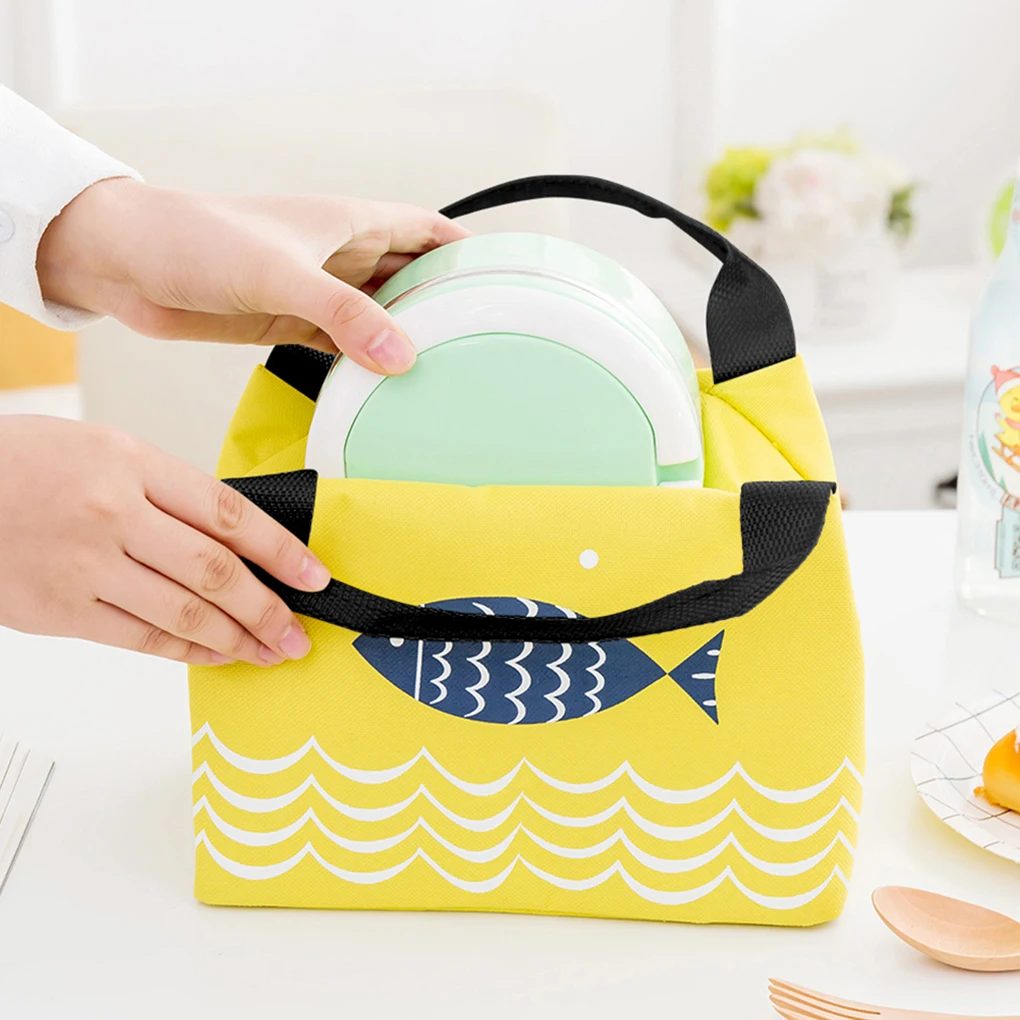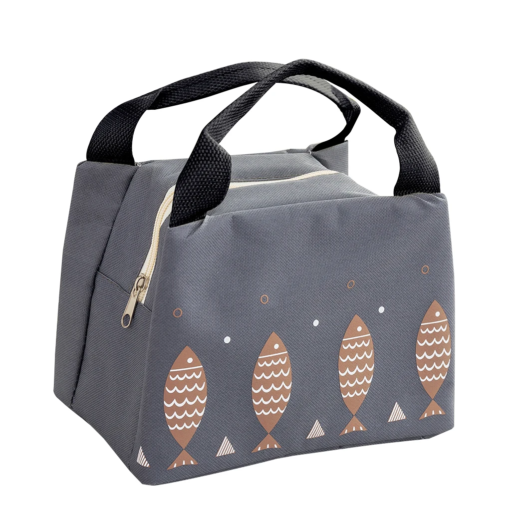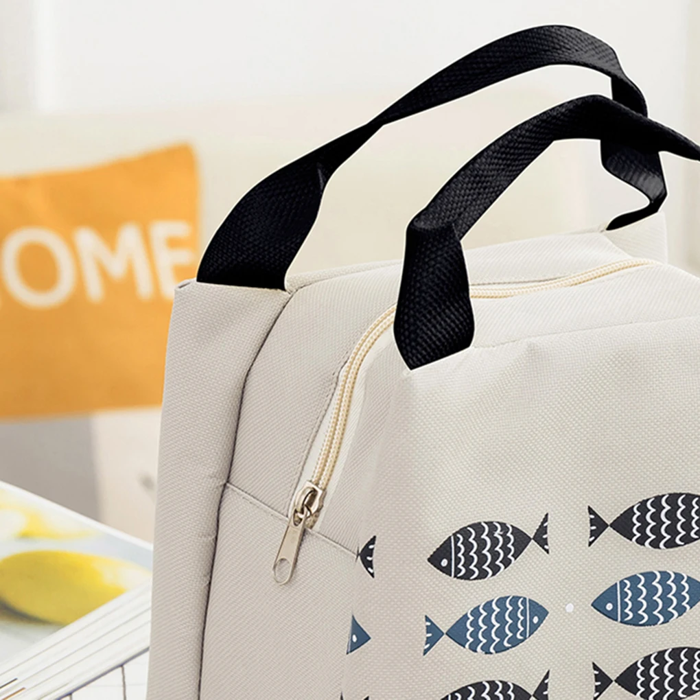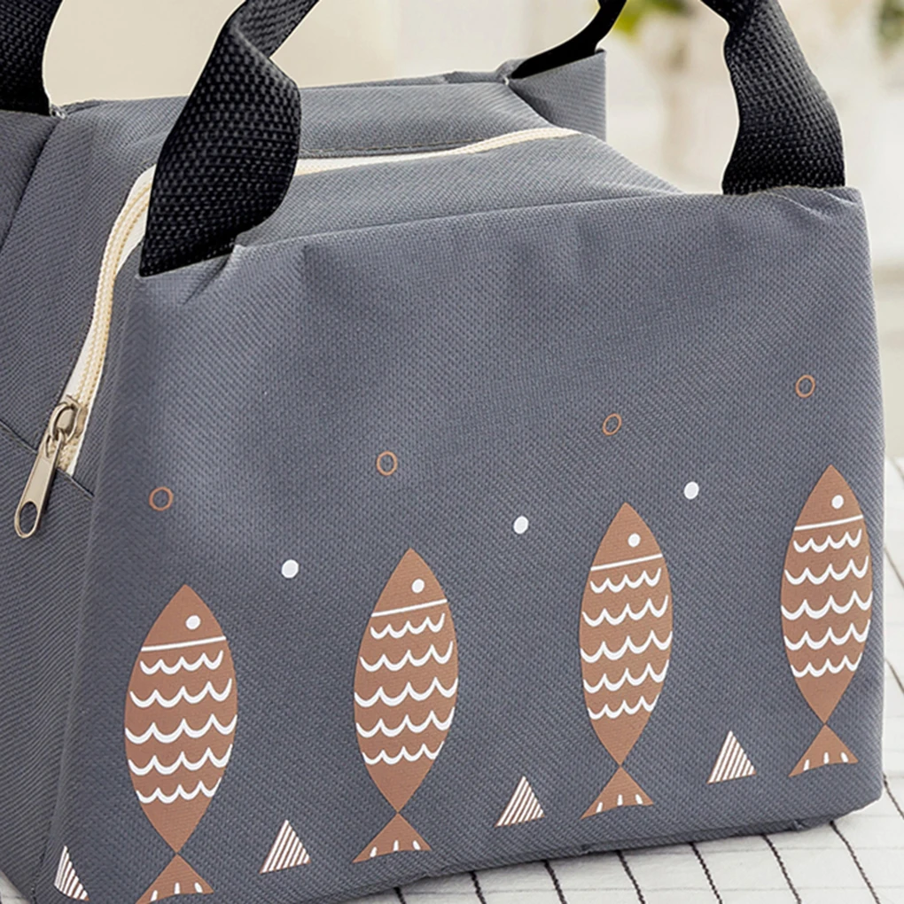 Большая емкость: вы можете положить Ланч-бокс, молочную бутылку, чайник, фрукты в сумку, удобная ручка.Ткань Оксфорд износостойкая и водонепроницаемая, а фурнитура также высокого качества.Его подкладка из алюминиевой фольги сохраняет тепло и холода и является водонепроницаемой, которая сохраняет свежий вкус обеда.Он имеет модные принты рыбы и хороший контур, показывающий нежный темперамент. Подходит для женщин и детей.Застежка-молния, дизайн ручки, легко носить с собой и удобно использовать. Сверхтолстая изоляция сохраняет еду прохладной и свежей.