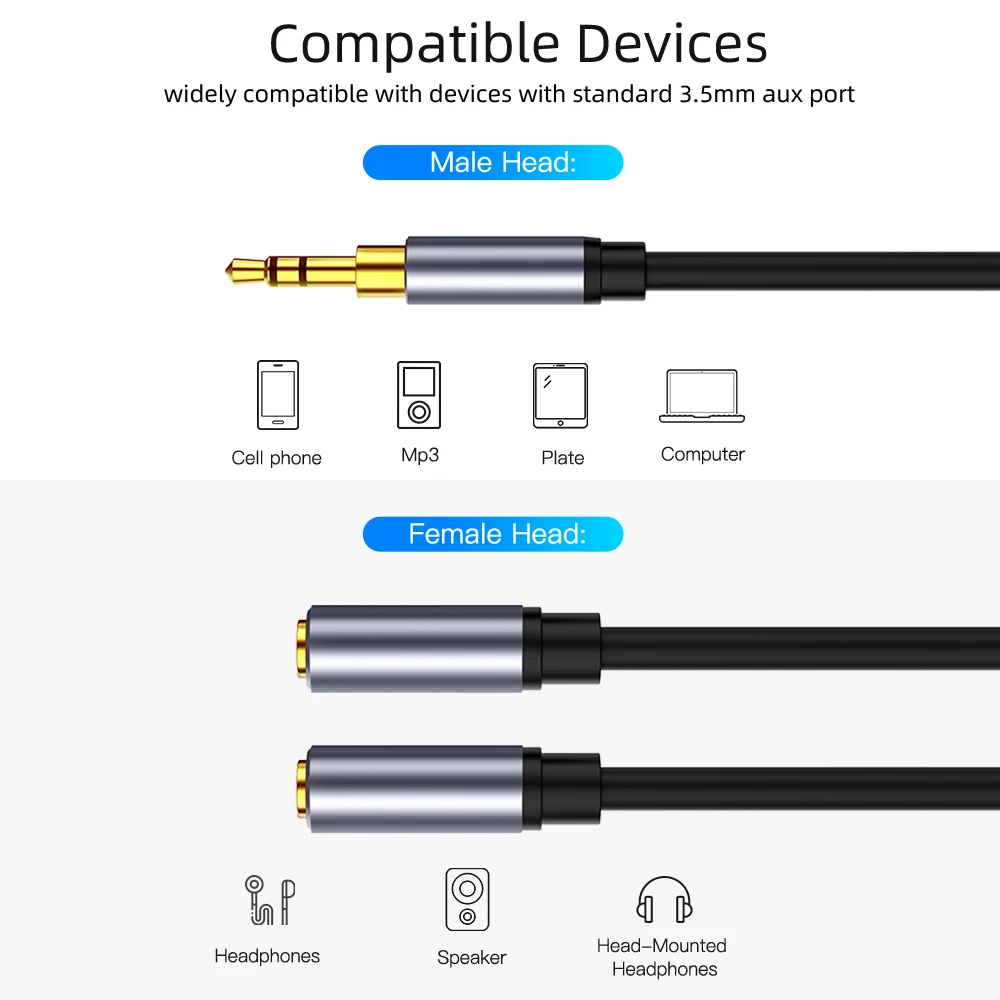Сплиттер для наушников кабель для компьютера 3,5 мм мама к 2 папа 3,5 мм аудио разъем папа к двойному мама 3,5 AUX аудио адаптер