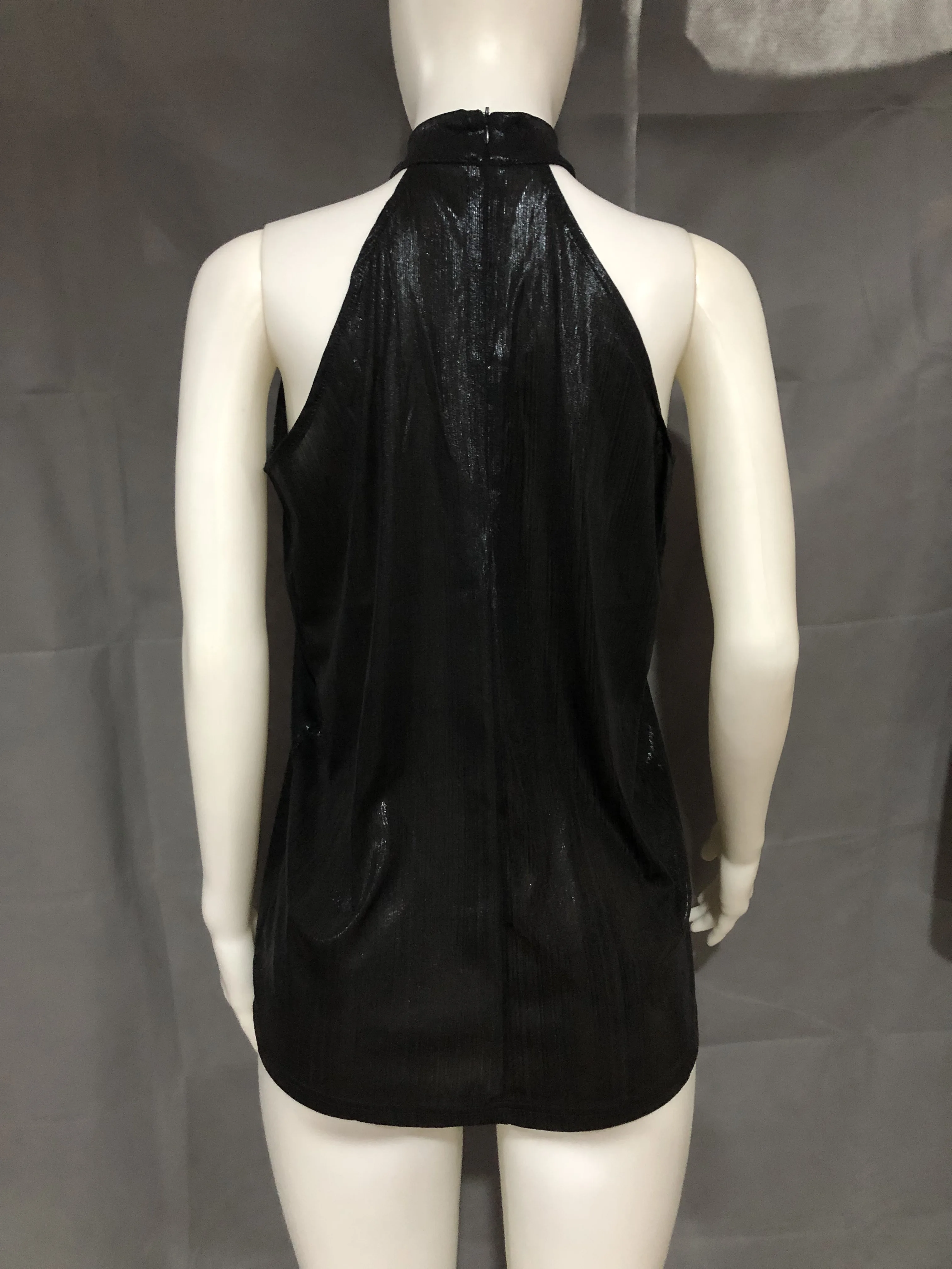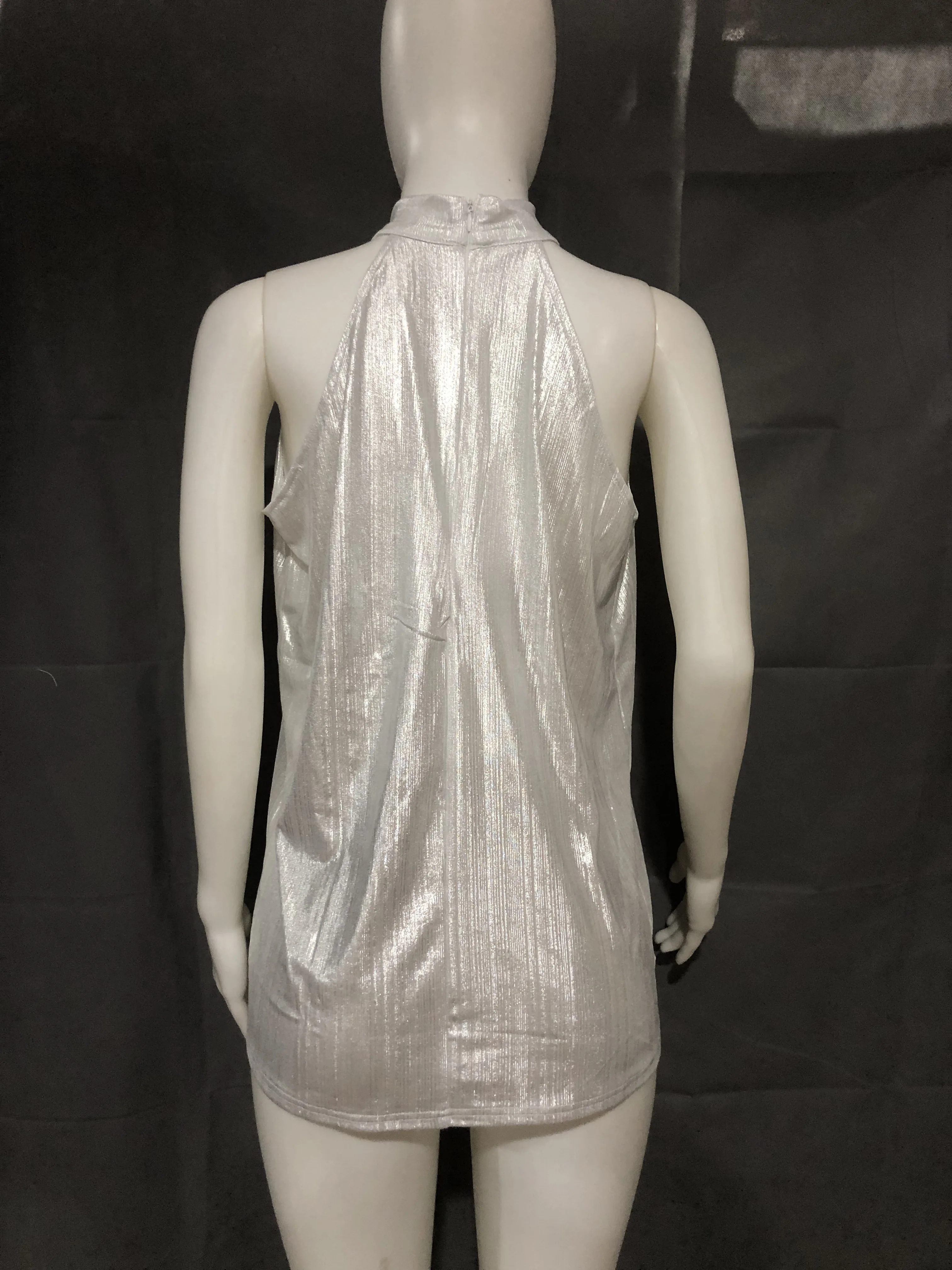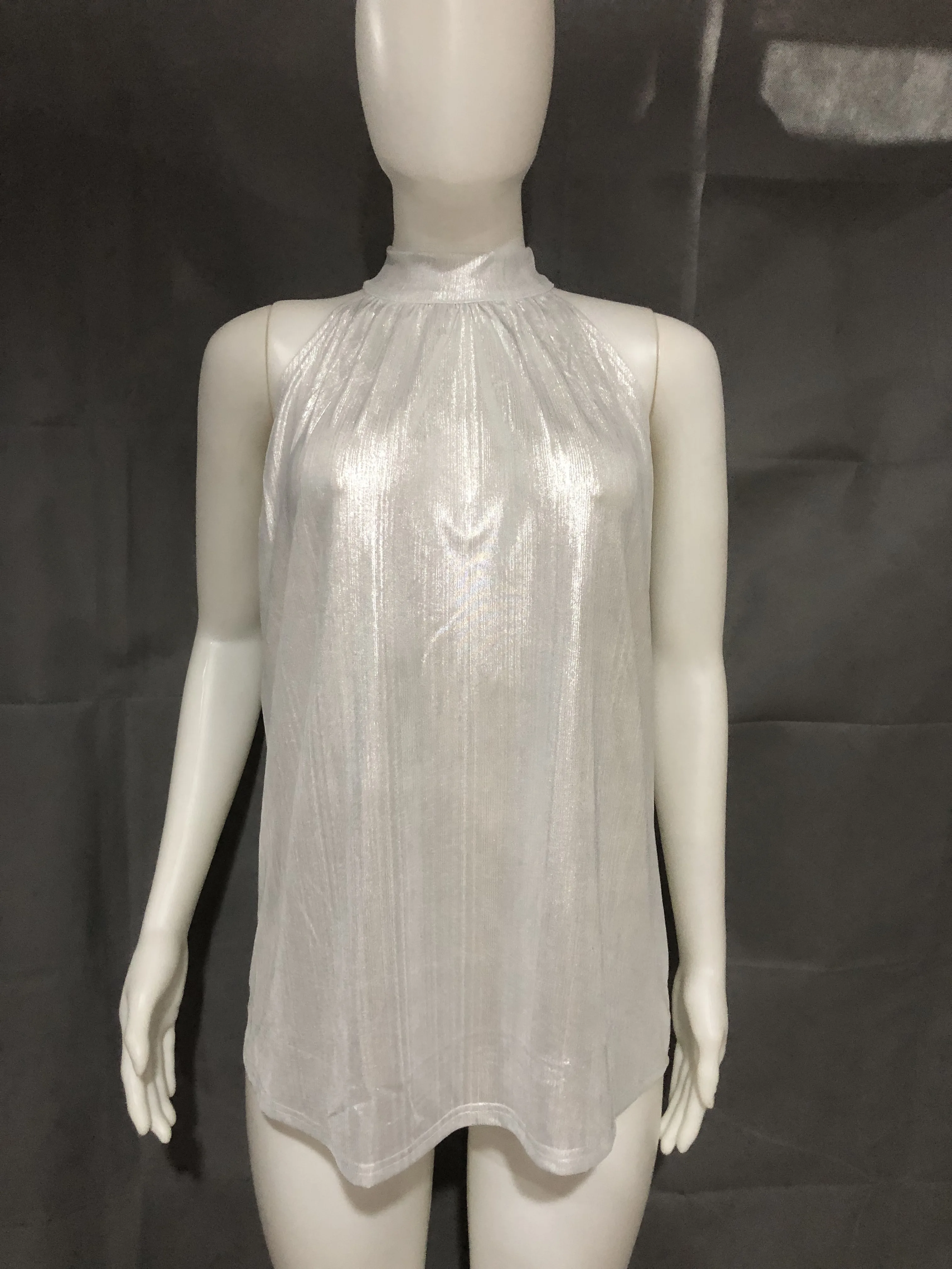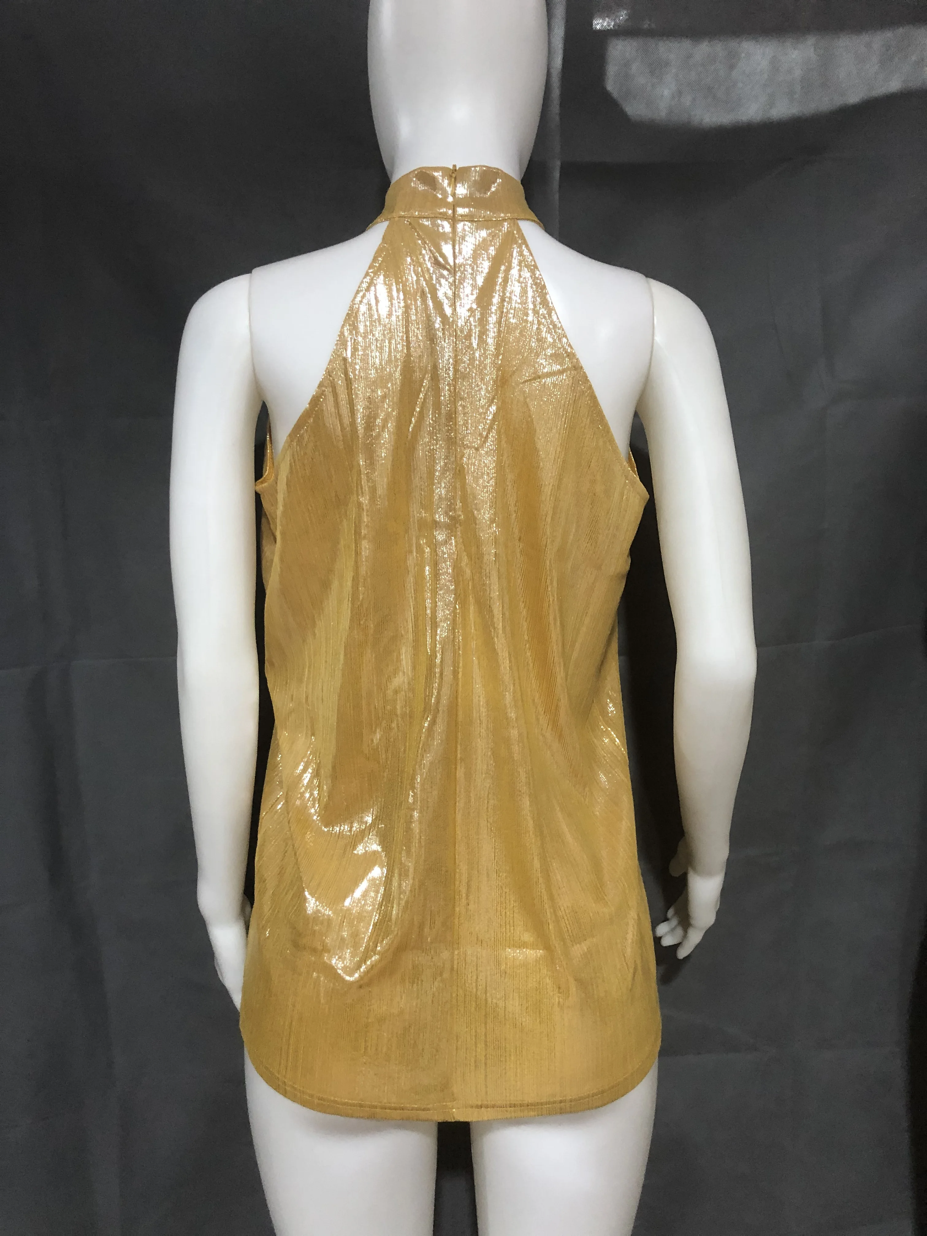 Женская Золотая блузка, новинка 2019, модная летняя повседневная Свободная блузка без рукавов с высоким воротником, футболка