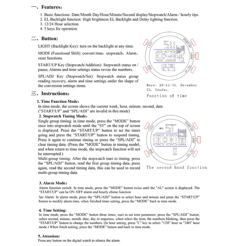 Не Поворачивайте время регулировки рук, чтобы избежать повреждения срока службы движения. Не используйте часы с 21:00 до 3:00, чтобы избежать повреждения и сокращения срока службы.Содержит: