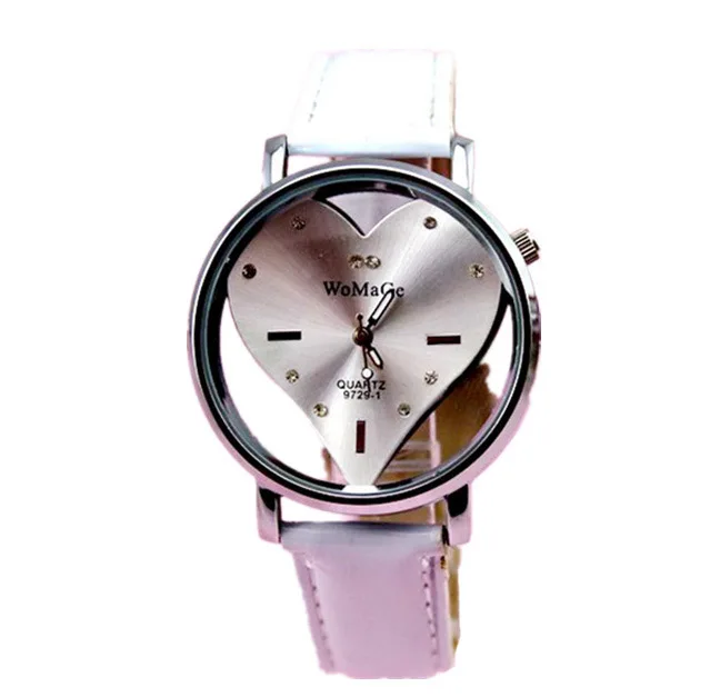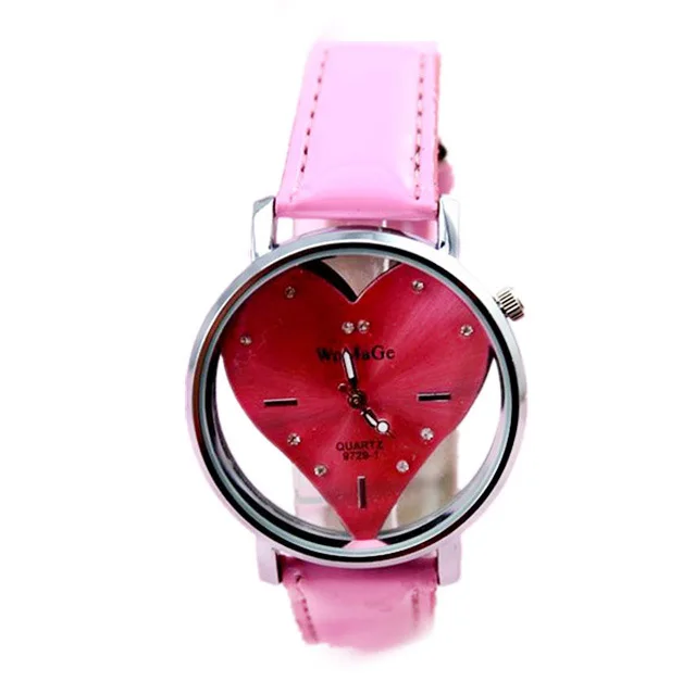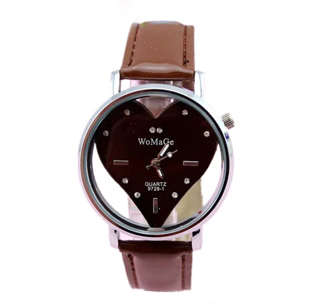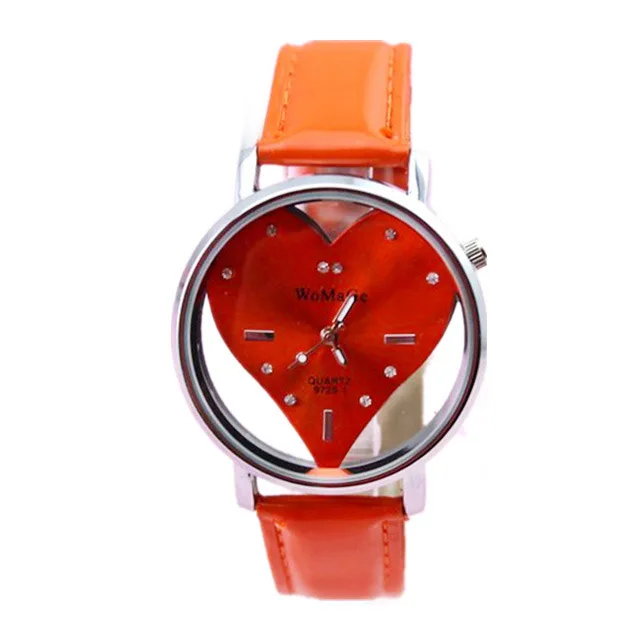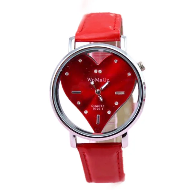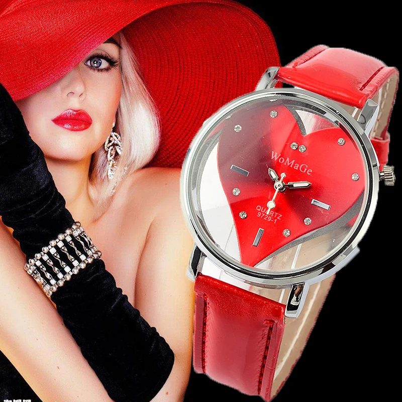 Женские наручные часы с красным сердцем, модные наручные часы с кож...