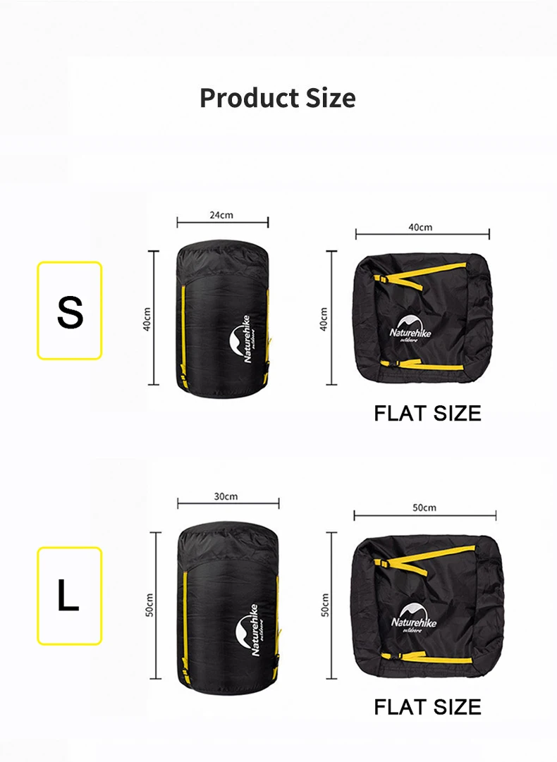 Широкое использование: это позволяет взять все, что вам нужно, особенно те громоздкие вещи, такие как одежда/одеяла/спальные мешки/подушки/перчатки и так же. Это определенно сделает ваше путешествие гораздо более удобным и удобным! -Бренд: Naturehike -Наименование товара: мешок для кемпинга -Материал: нейлоновая тесьма + пряжка из АБС-пластика -Ткань: 300D ткань Оксфорд -Вес: 75 г/95 г -Размер: 40*24 см (маленький) / 50*30 см (большой) -Упаковка: 21*15*1,9 см (маленький) / 22*18*2,5 см (большой) Примечание: Продукт-это мешок для вещей, не содержит спальный мешок или что-то еще!