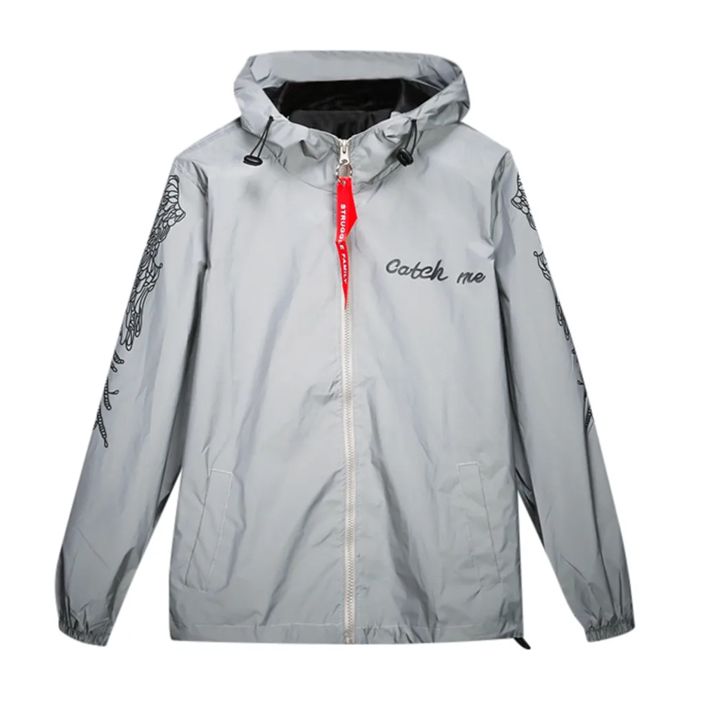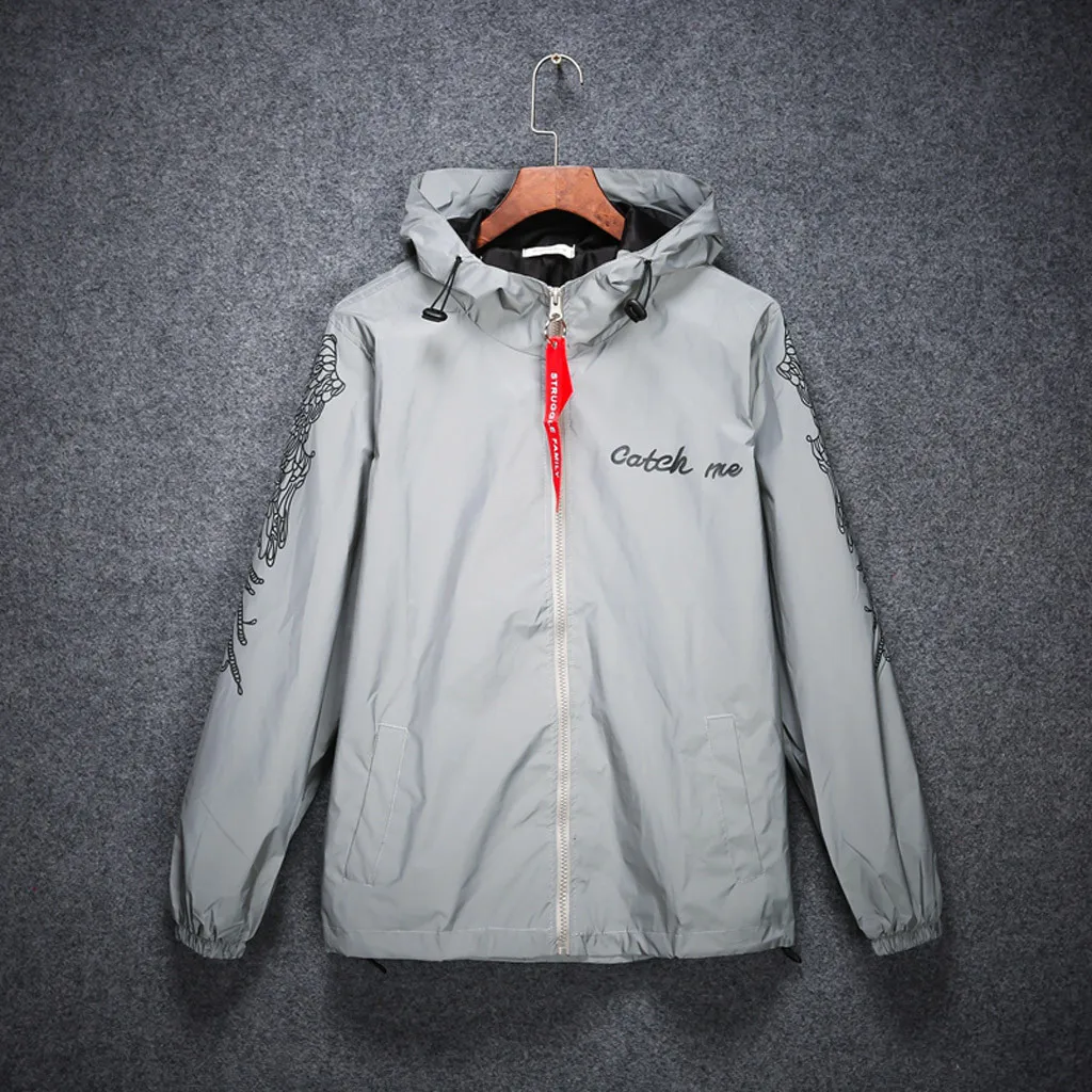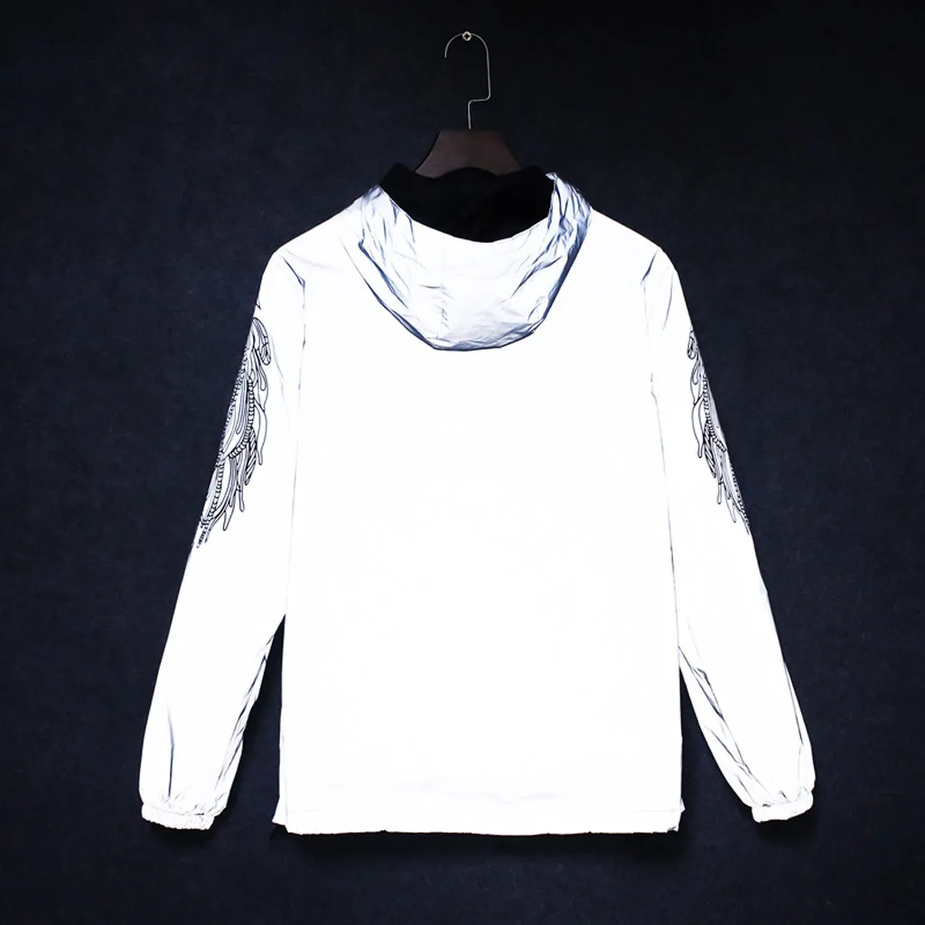 Светоотражающая ветровка Feitong для мужчин и женщин, уличная куртка с капюшоном в стиле Харадзюку, пальто для осени и зимы