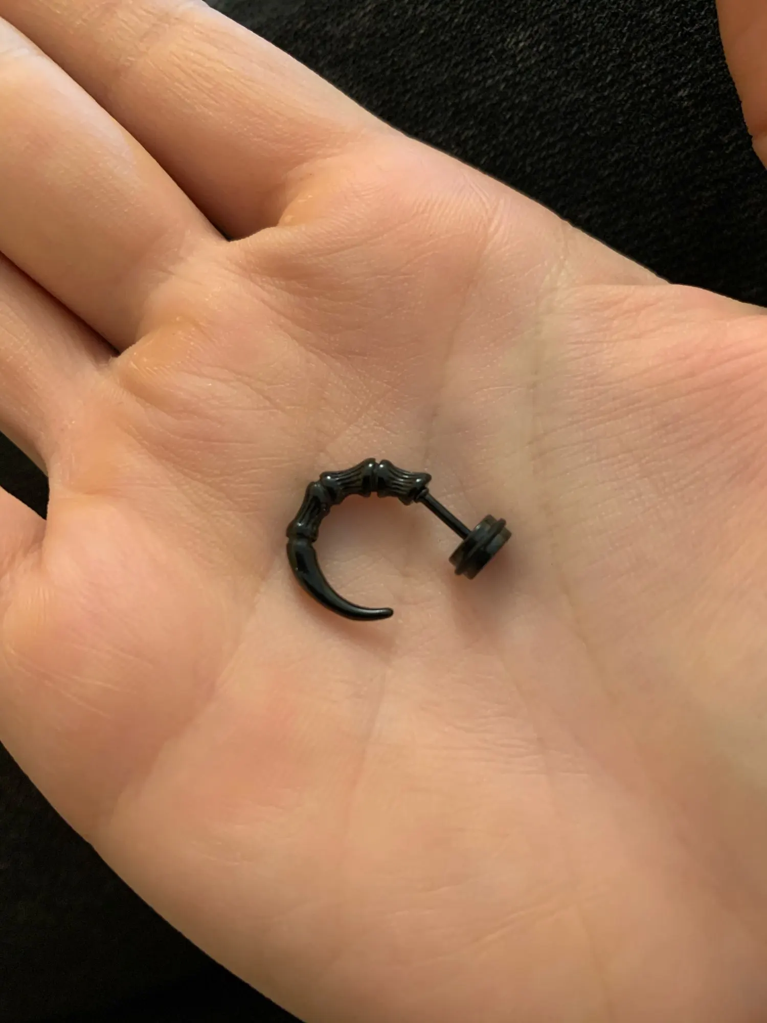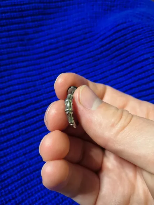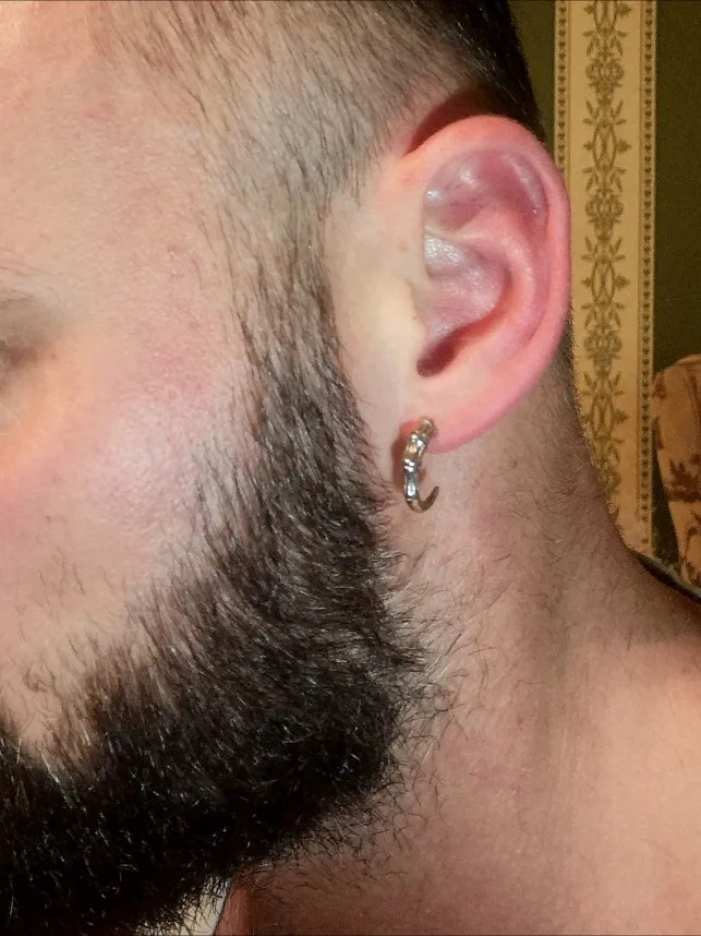 Приехало достаточно быстро. для моего уха штанга оказалась слишком длинной,поэтому сама сережка слегка свисает и болтается. Также штанга немного кривая у основания, но это не сильно важно