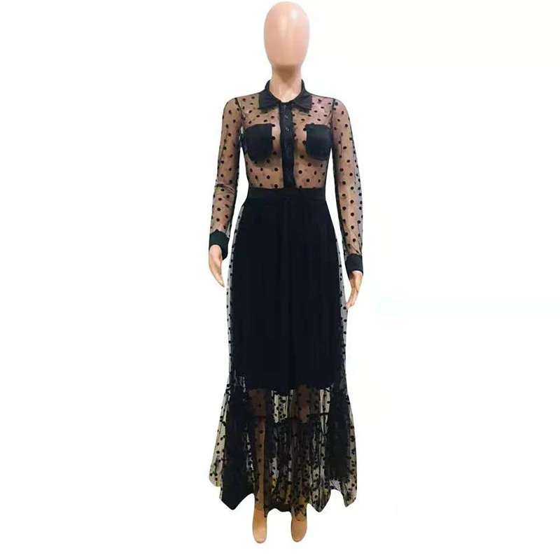 Clothing styleLace Mesh Dots Black Dress