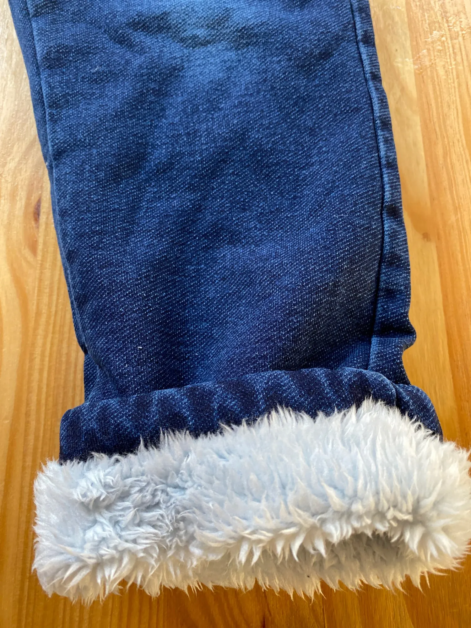 Товар получили быстро. Штаны теплые, как и заказывали, без видимых дефектов. Сам джинс не очень хороший, больше похоже на стрейчевую ткань. Карманы есть только задние на попе, спереди обманки. Брали на худенькую девочку ростом 110 см, размер брали 7Т. Длина штанины с небольшим запасом, можно носить без подворота. При узкой штанине "по ноге" в бедрах довольно широкие (минимум на 2 размера шире).