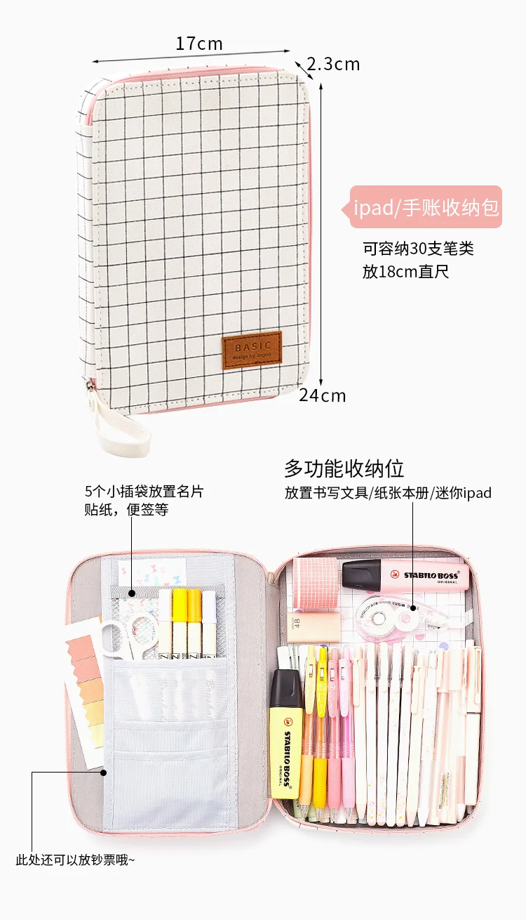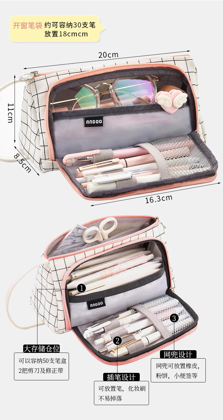Сетчатый пенал для карандашей в Корейском стиле, простой тканевый чехол в клетку с цветами, оригинальная новая коллекция, Подарочный пенал