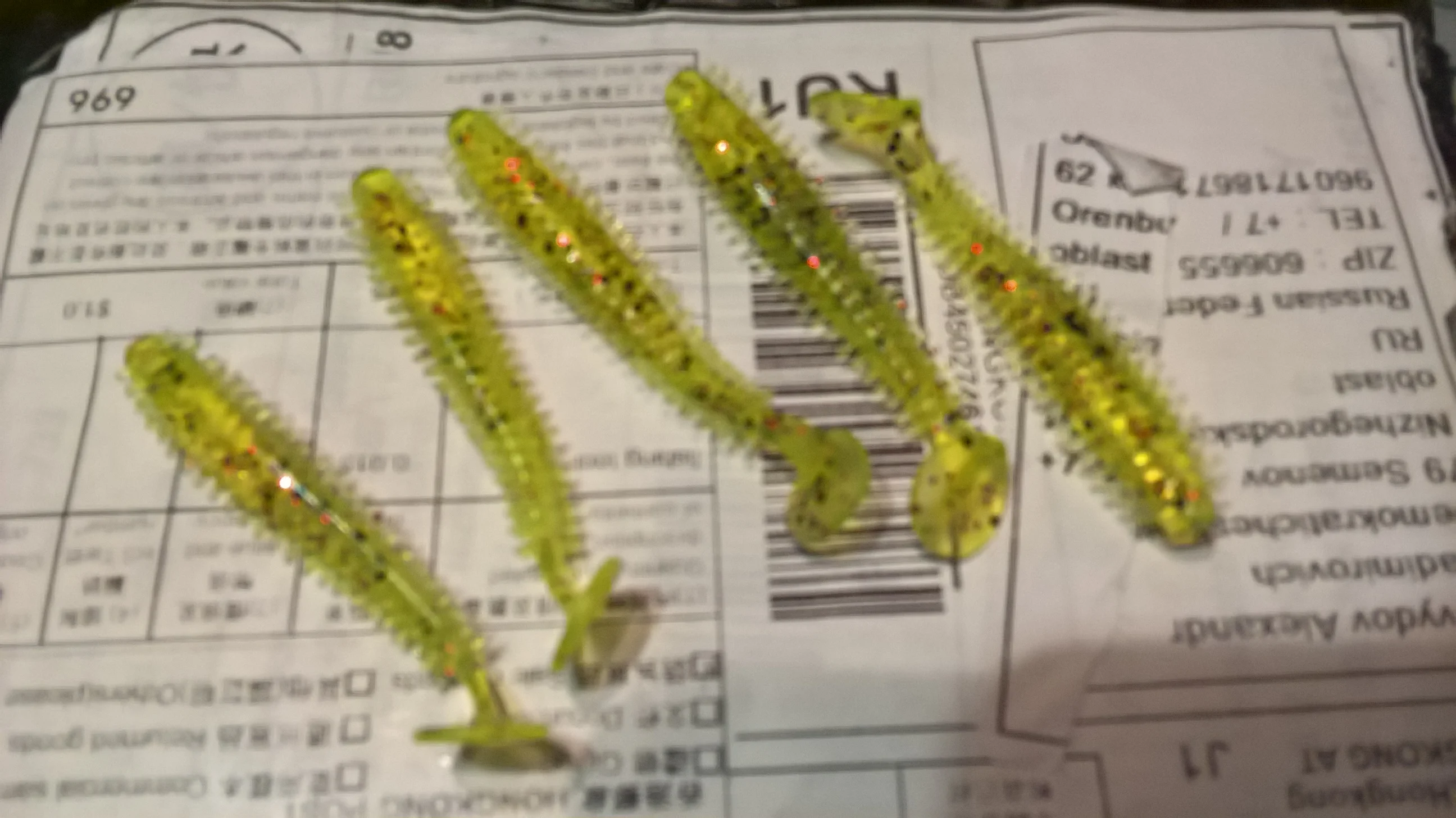 Товар получен. Посылка была вручена почтовым ящиком. До Нижегородской области шла ровно пять недель. Резина нормальная, мягкая. Окунь я думаю оценит. Продавцу ставлю 5 звёзд. огромное спасибо. Удачных продаж и дальнейшего развития в бизнесе.