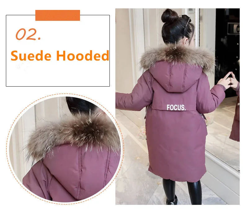 Детская зимняя пуховая хлопковая куртка 2019 г. Новая модная одежда для девочек детская одежда толстая парка зимний комбинезон с меховым капюшоном, верхняя одежда, пальто