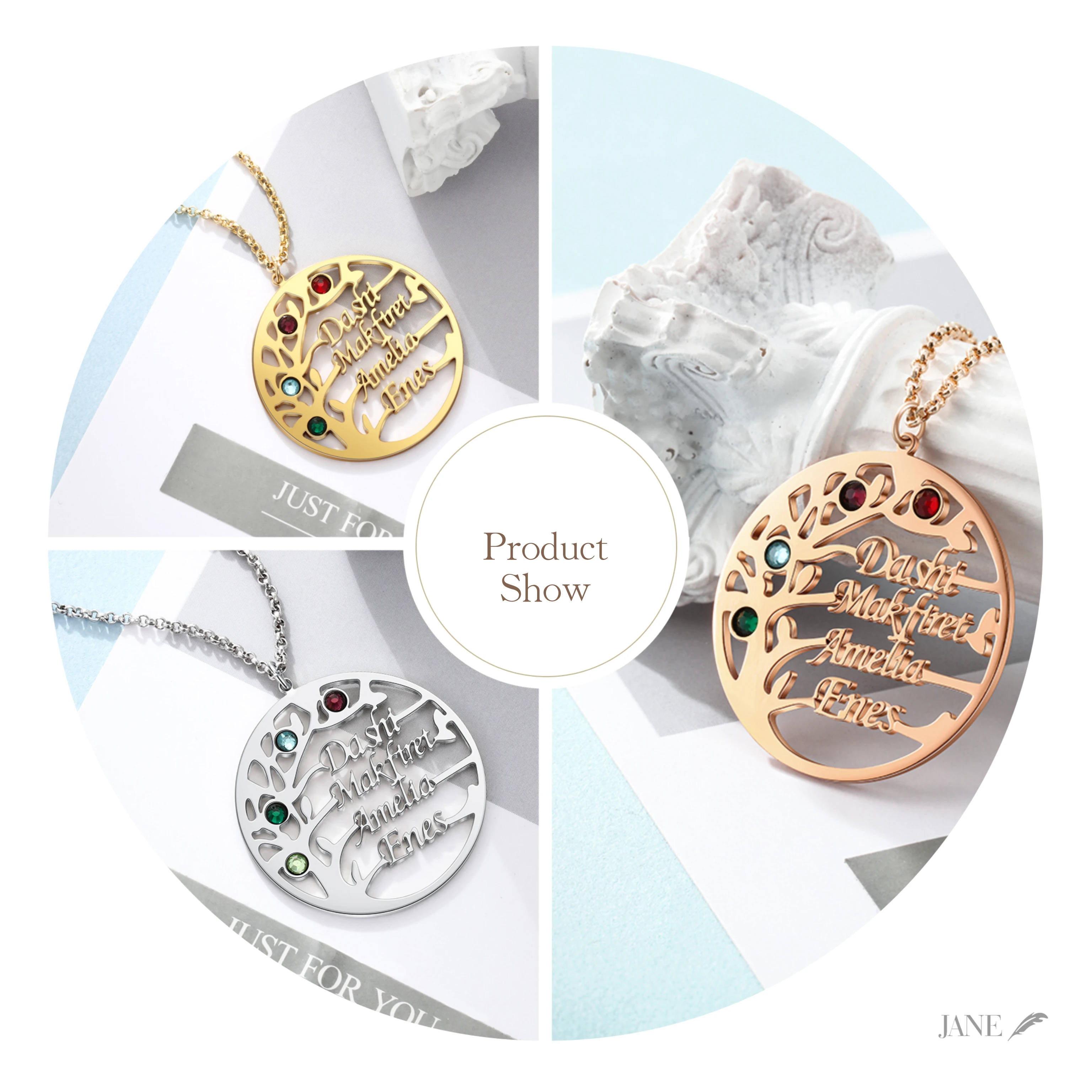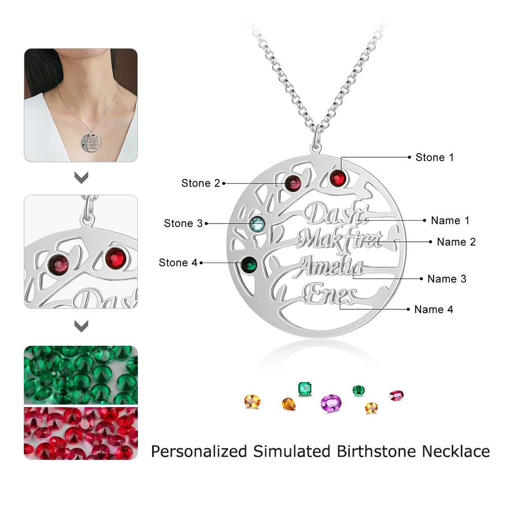 Ожерелье из серебра 925 пробы с именем на заказ, ожерелье с деревом жизни, ожерелье с персонализированным камнем-талисманом золотого цвета, Изящные Ювелирные изделия, подарок на день матери