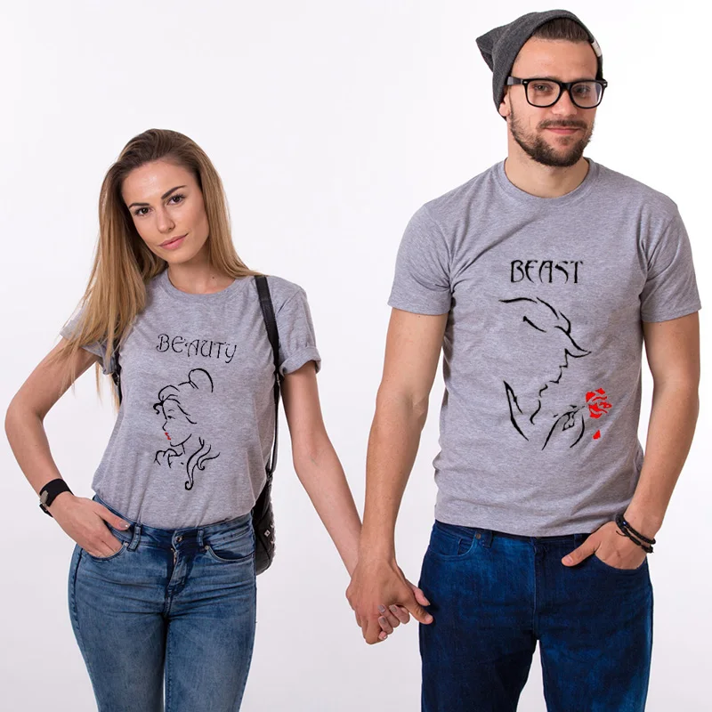 Женская Яркая футболка унисекс, мягкая хлопковая модная парная подходящая футболка, зверь, Мужская Роза, красавица