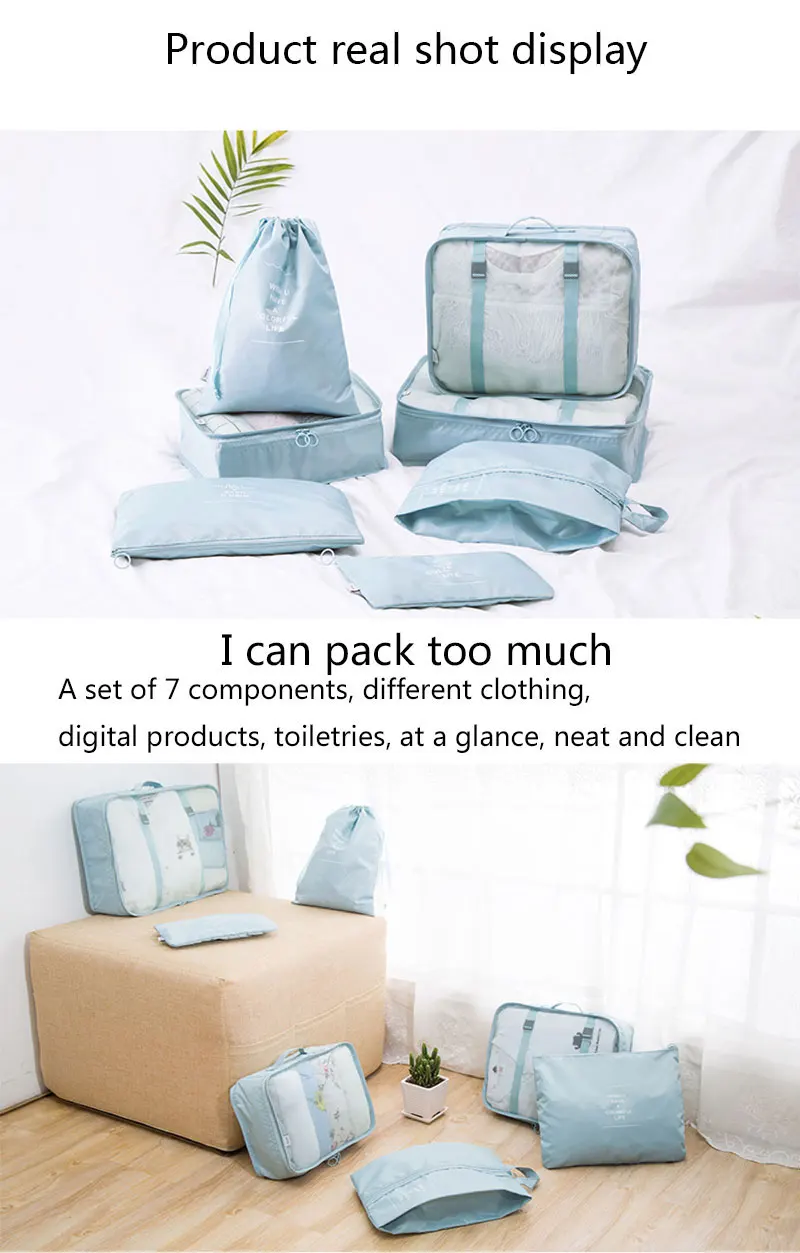 7 шт.компл., дорожный органайзер для упаковки багажа, водонепроницаемые сумки для хранения одежды, Сетчатая Сумка в сумке, аксессуары для путешествий