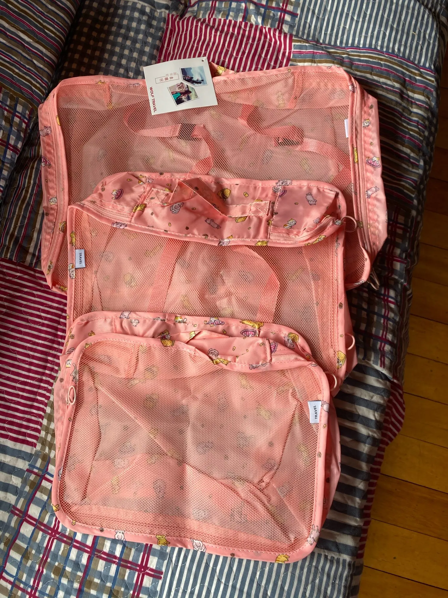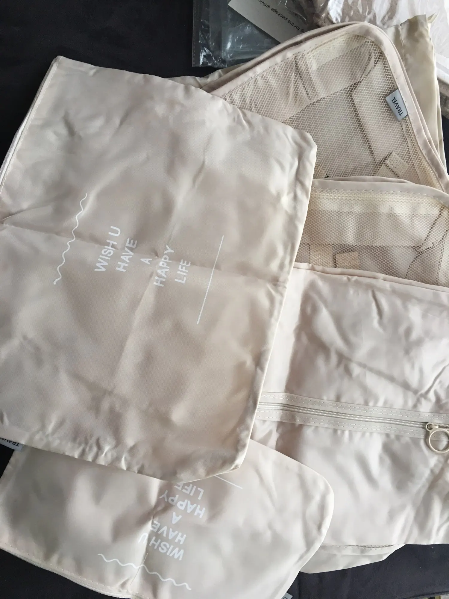 супер сумочки, все как на фото, думала, будет мало, а на деле прям заполняют весь чемодан и все туда помещается, очень удобно, легко доставать вещи и ничего не мнется сильно, для коротких поездок супер - берите, не сомневайтесь. Пришло быстро - 12 дней, кинули в почтовый ящик. мне пришло в большом зип пакете - использовала для купальника мокрого - удобно заодно)