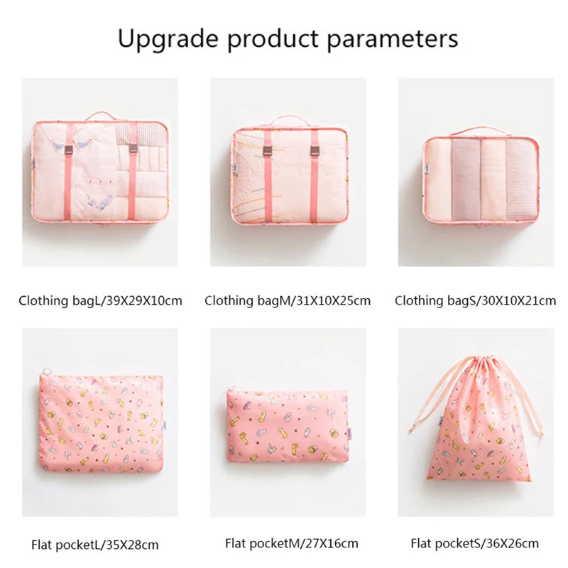 Это набор сумок разных размеров для облегчения организации багажа и подходит для различных интервалов. Это облегчает отправку и возврат.