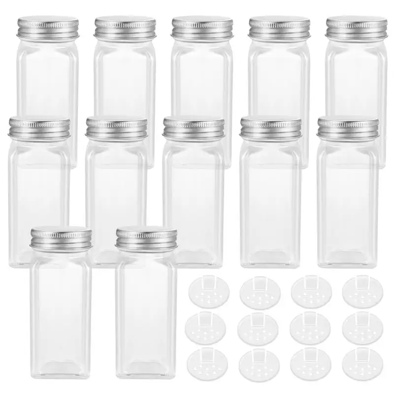 Квадратные бутылки для приправ, бессвинцовые стеклянные банки для специй, шейкер для соли, пищевые контейнеры, кухонные контейнер для приправы с крышкой, 12 шт.