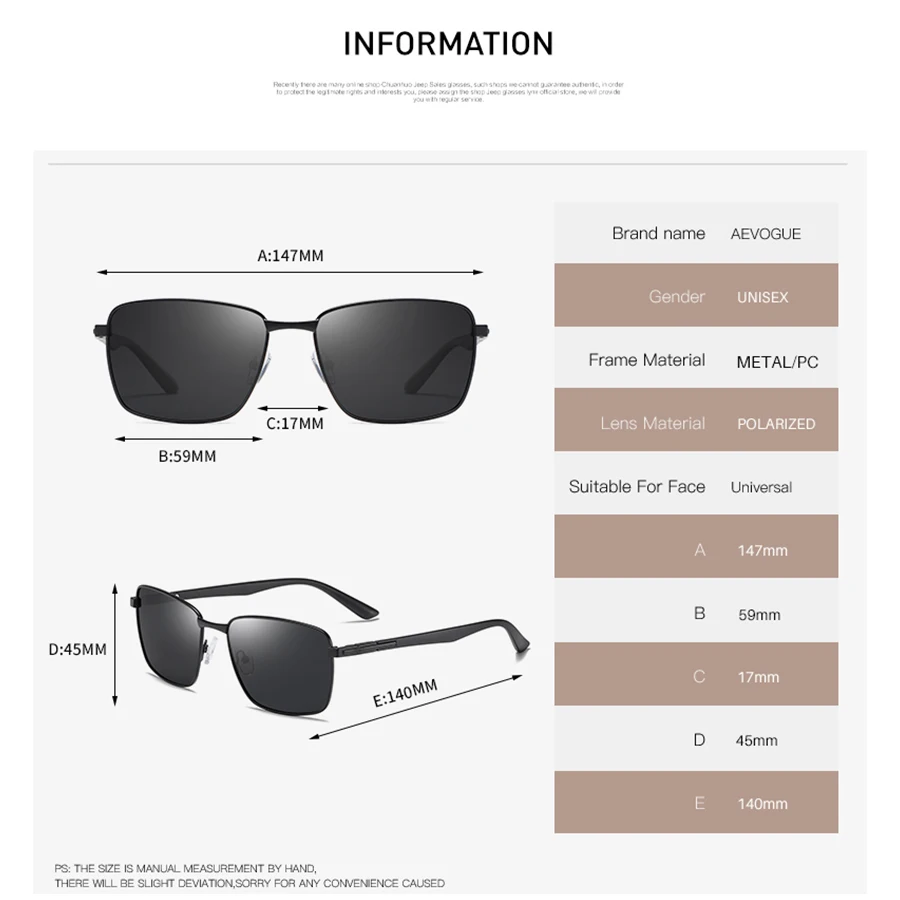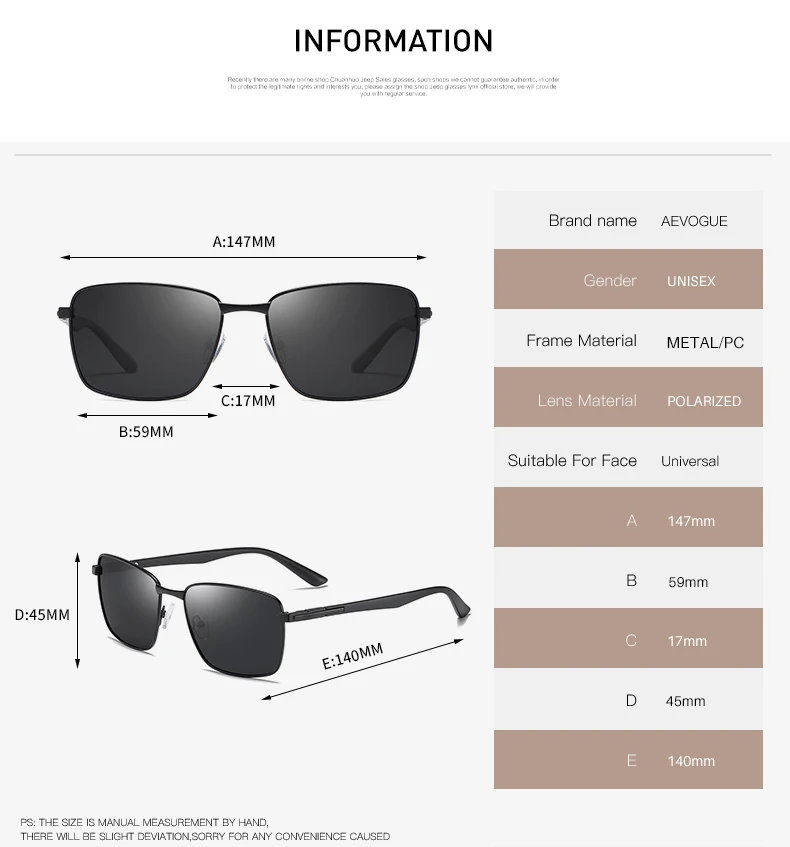 Солнцезащитные очки AEVOGUE мужскиеженские, мужские, 2019 поляризационные Квадратные Солнцезащитные очки в металлической оправе, цвета океана, UV400, AE0750
