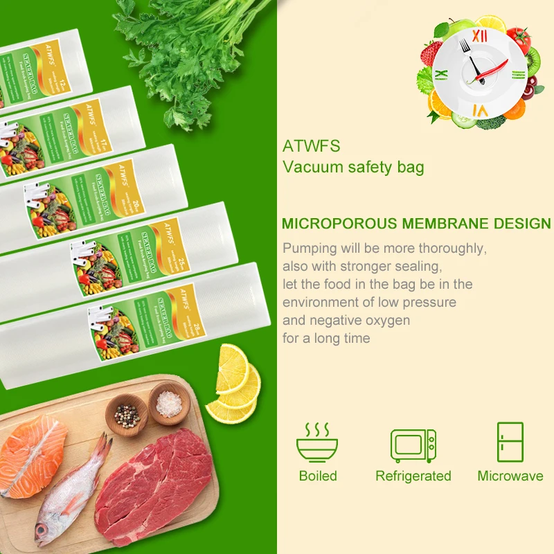 Вакуумные пакеты ATWFS для вакуумного упаковщика, кухонные пакеты вакуумные мешки для хранения для упаковки пищевых продуктов, рулоны 1217202528 см * 500 см