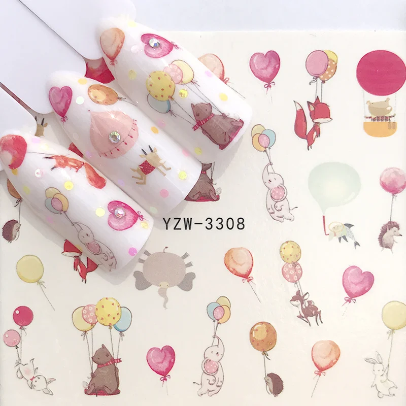 1 лист переводной наклейки на воздушные шары для ногтей милые Мультяшные животные Слайдеры для ногтей самодельные клеящиеся наконечники для дизайна ногтей декоративные обертки