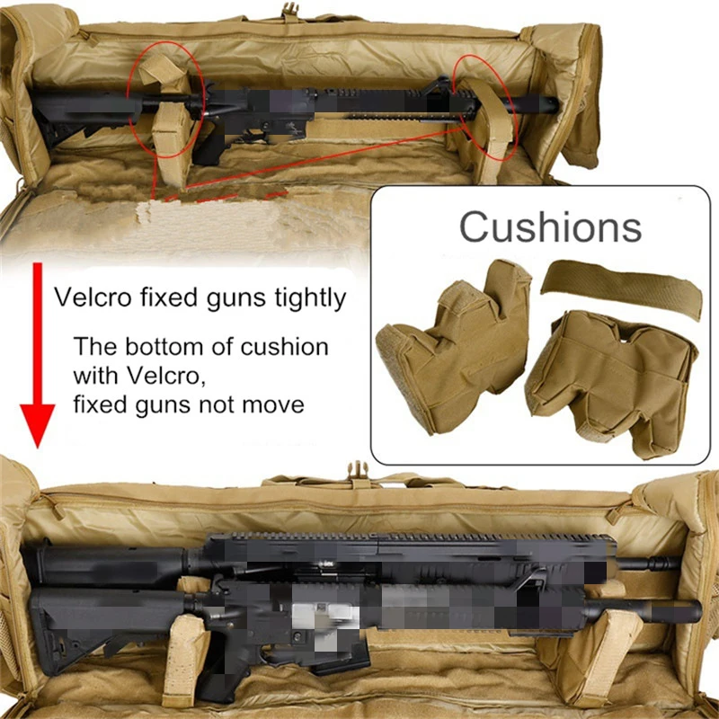 Размер: около 96 см * 17 см * 26 см (погрешность измерения 2-3 см) Цвет: черный/песочный * С 2 ручными ремешками * Регулируемый мягкий плечевой ремень и нагрудный ремень. * Идеально подходит для охоты и любых военных целей