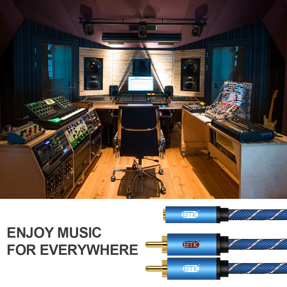 Аудиокабель-разветвитель EMK с разъемом 3,5 мм на 2 RCA, Hi-Fi, для ПК, наушников, резонирующей коробки, 3,5 разъем AUX на 2 RCA, кабель динамика