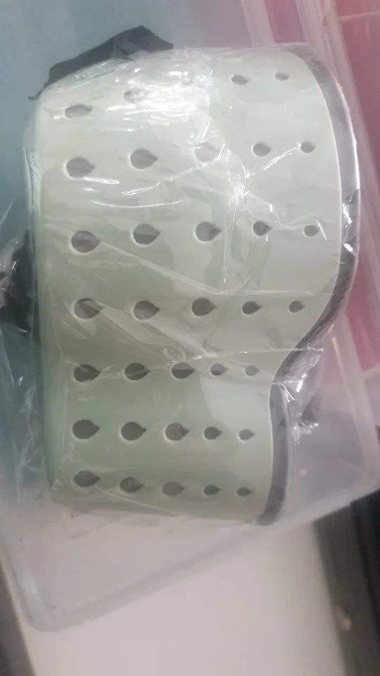 Товар соответствует описанию (цвет, размер). Размер: на одну губку + щетка вертикально. Пластик достаточно твердый, но при пересылке корзинка немного потеряла форму, думаю позже расправится. Заказ пришел немного позже, чем другой заказанный одновременно.