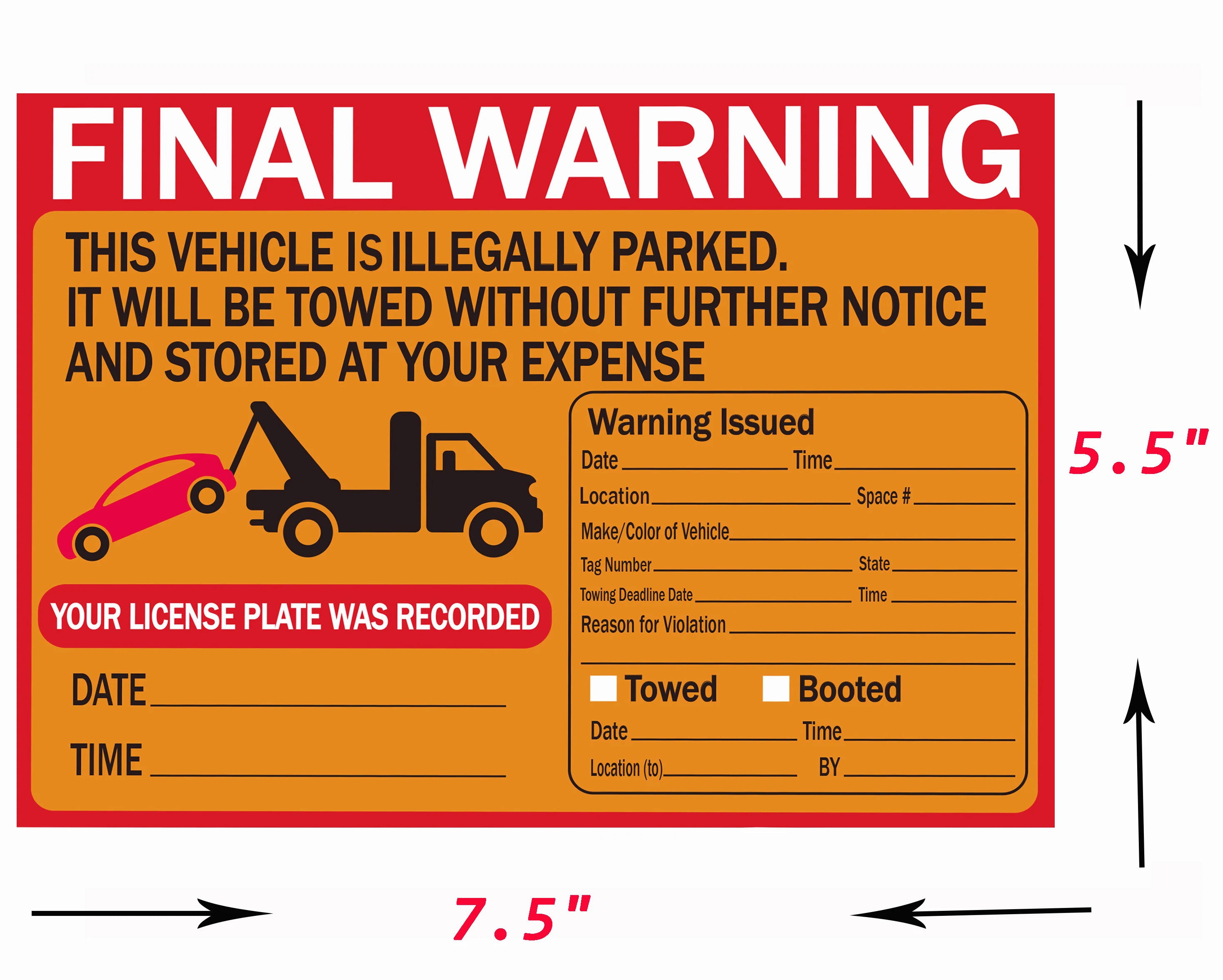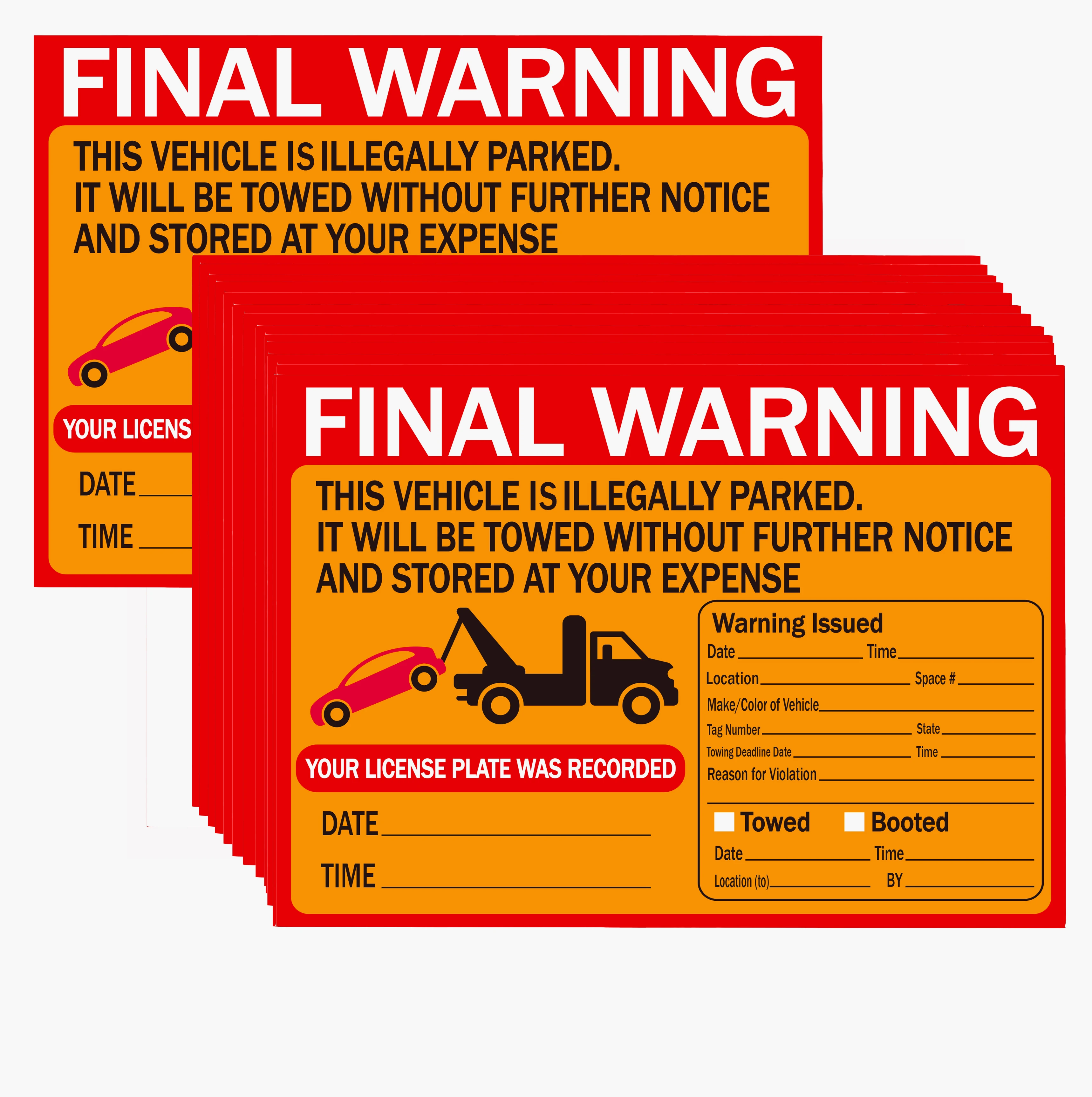 Они обычно используются для маркировки и буксировки транспортных средств-отправьте желаемое сообщение. Для менее агрессивного принуждения оставьте вкладыш на и поместите под стеклоочиститель автомобиля «нарушитель парковки». Не позволяйте парковке в определенном месте