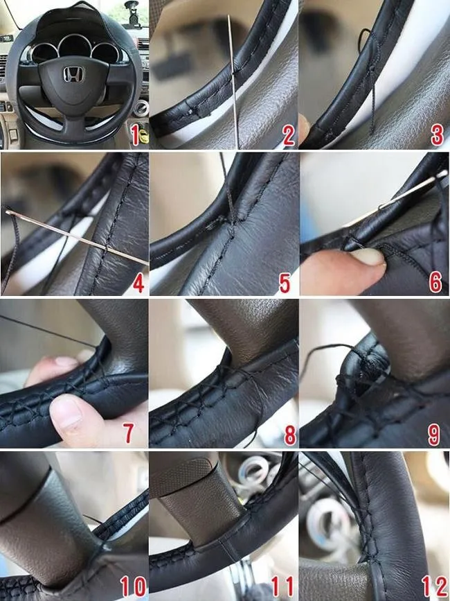 Оплетка на руль чехол рулевого колеса автомобиля с иголками и нитью искусственная кожа диаметр 38 см крышка рулевого управления couvre volant автомобильный