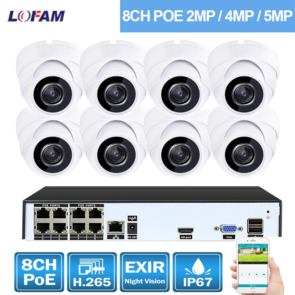 LOFAM HD набор камеры видеонаблюдения POE 8CH NVR комплект 2MP 4MP 5MP система безопасности ip-камера для внутреннего наружного видеонаблюдения