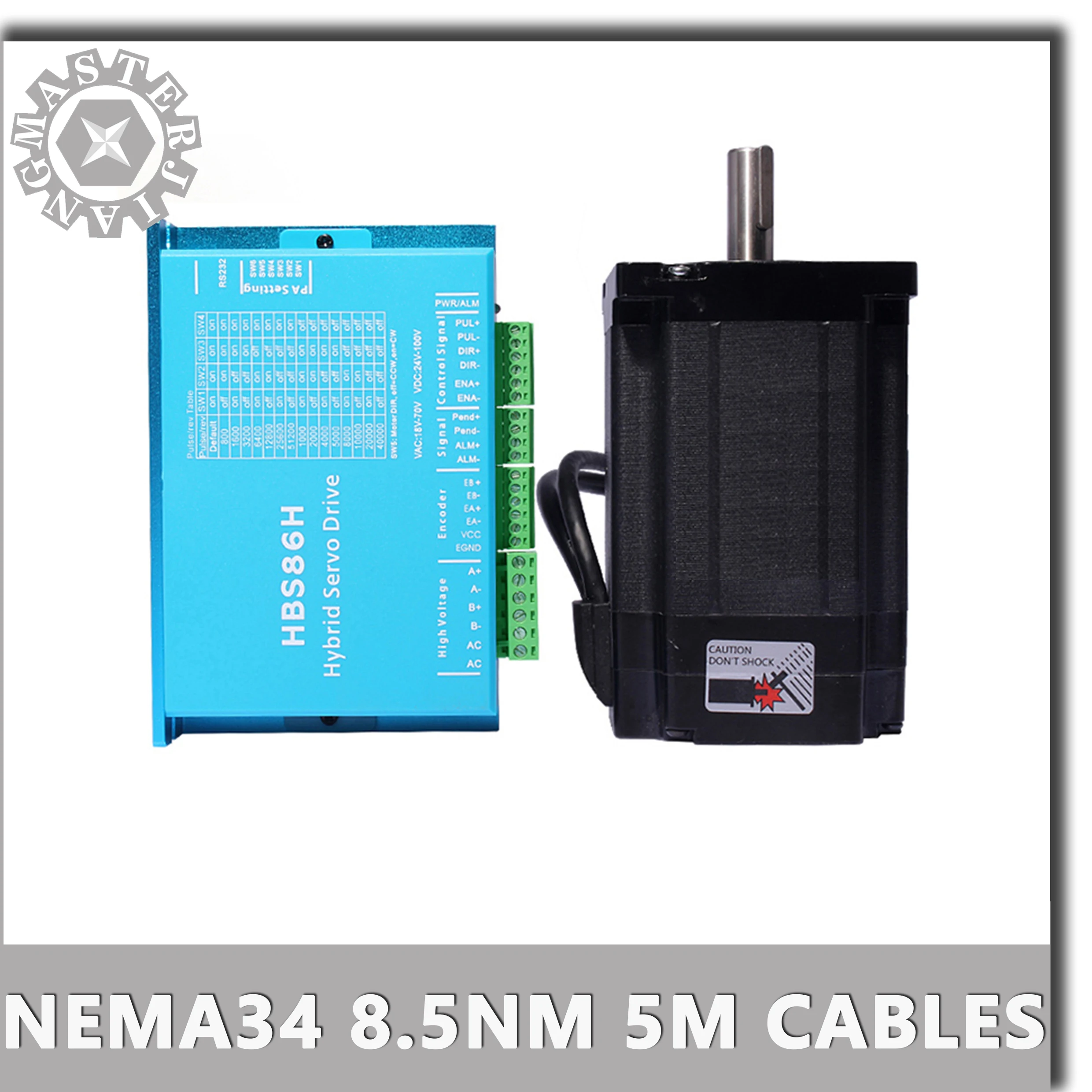 86 комплект шагового двигателя с замкнутым циклом 8.5N.M высокоскоростной двигатель с постоянным крутящим моментом 86HSE8.5N с 5M кодером и кабелями мотора + шаговый привод двигателя HBS86H