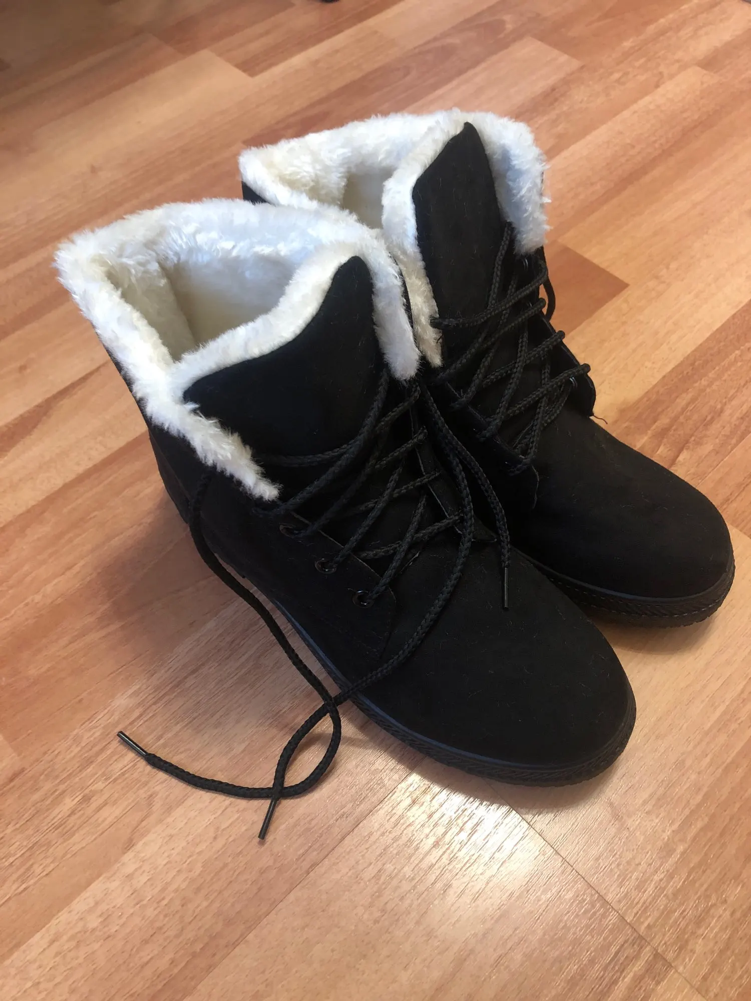 Ботинки пришли как на фото. Единственное-маломерят,как я поняла. Хоть и измерила стопу и заказала подходящий размер,но пришли прям в притык...Внутри довольно тёплые, мех немного торчал на ботинках,но это не критично. Подошва хорошая,сделаны вполне качественно. Но больше на самое начало зимы,не прям зимние. С продавцом не общалась,но вполне быстро пришли почтой, несмотря на долгую подготовку к отправке