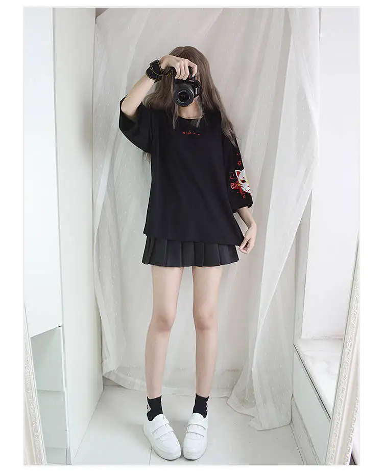 Летняя футболка с коротким рукавом в японском стиле для девушек и студенток, новинка, свободная футболка с половинным рукавом в стиле bf Harajuku