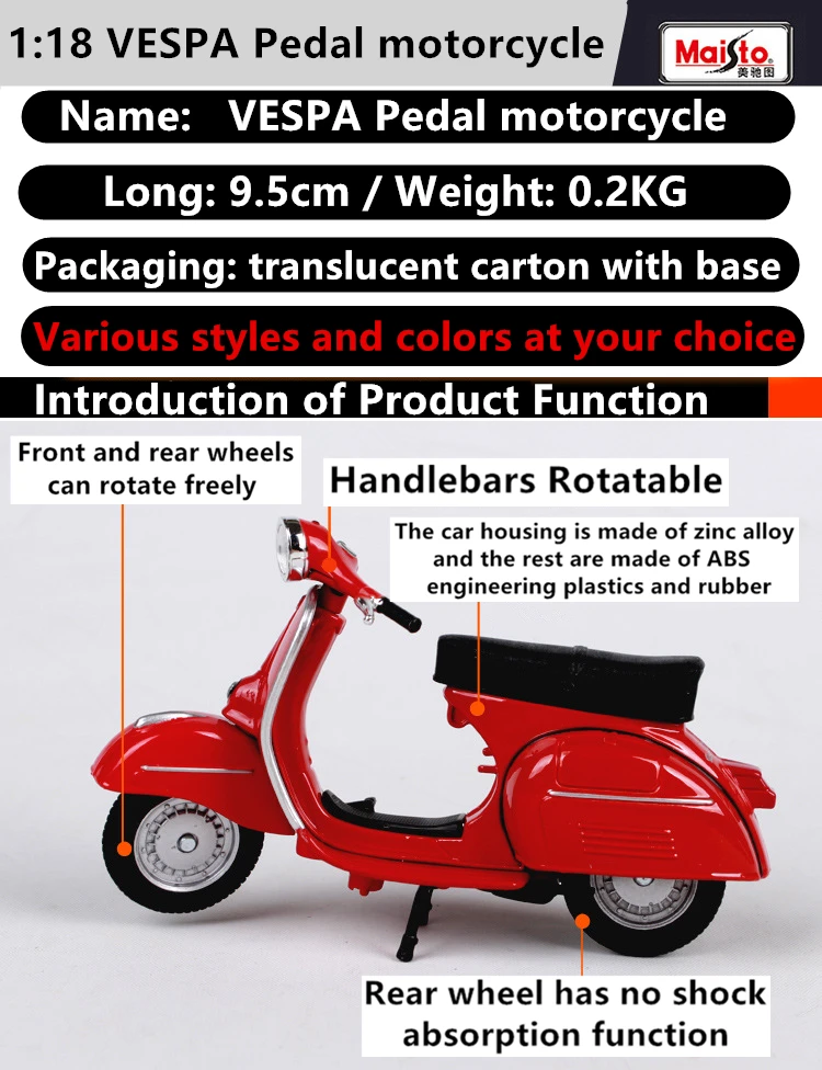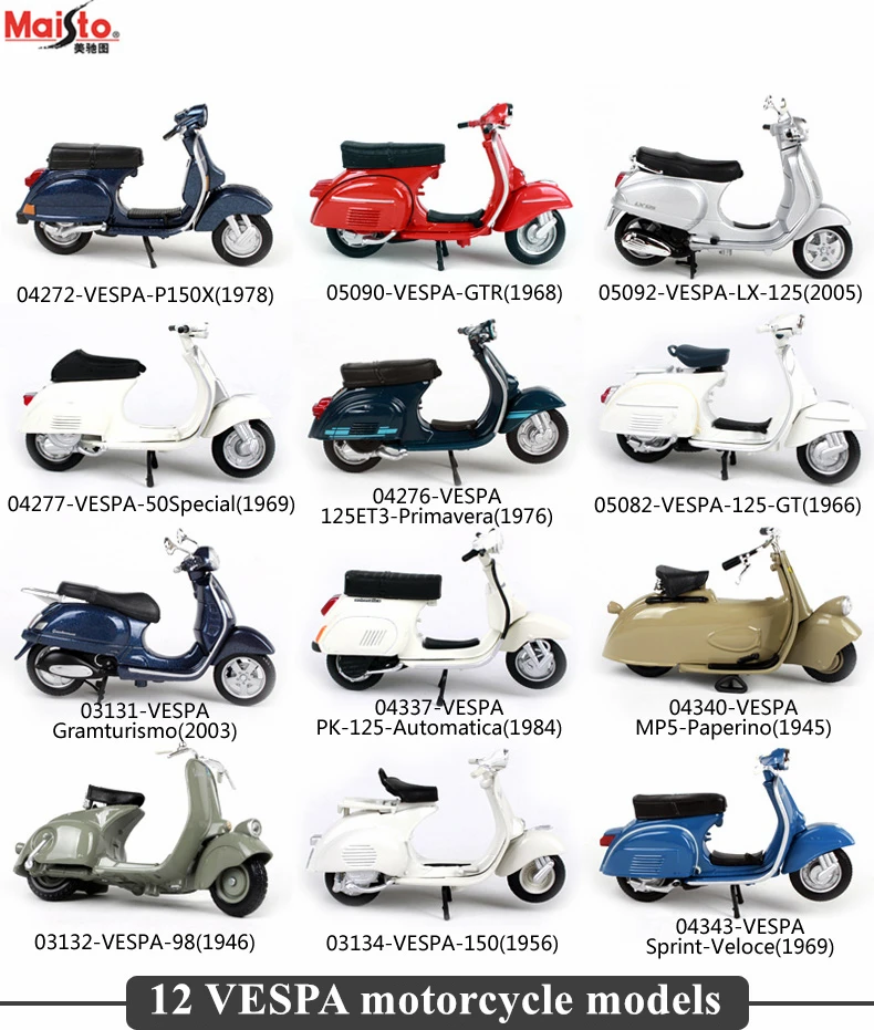 Самокат Maisto 1:18, 12 моделей, модель из сплава, модель Vespa Мотоцикл Vespa, римские праздничные коллекционные подарки
