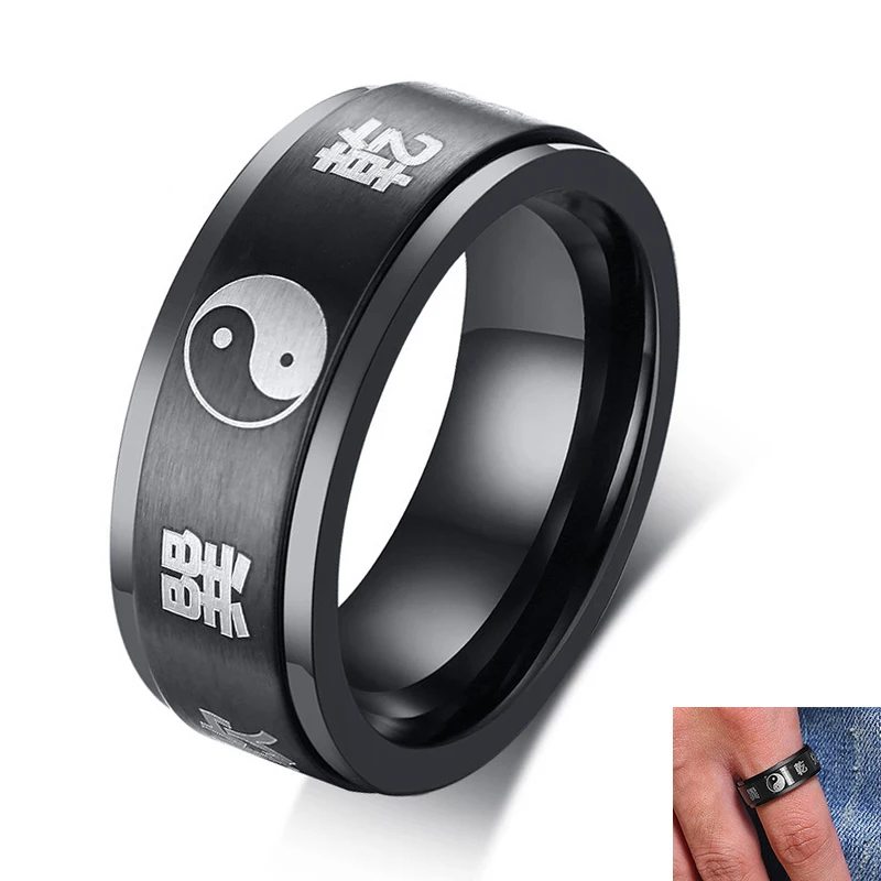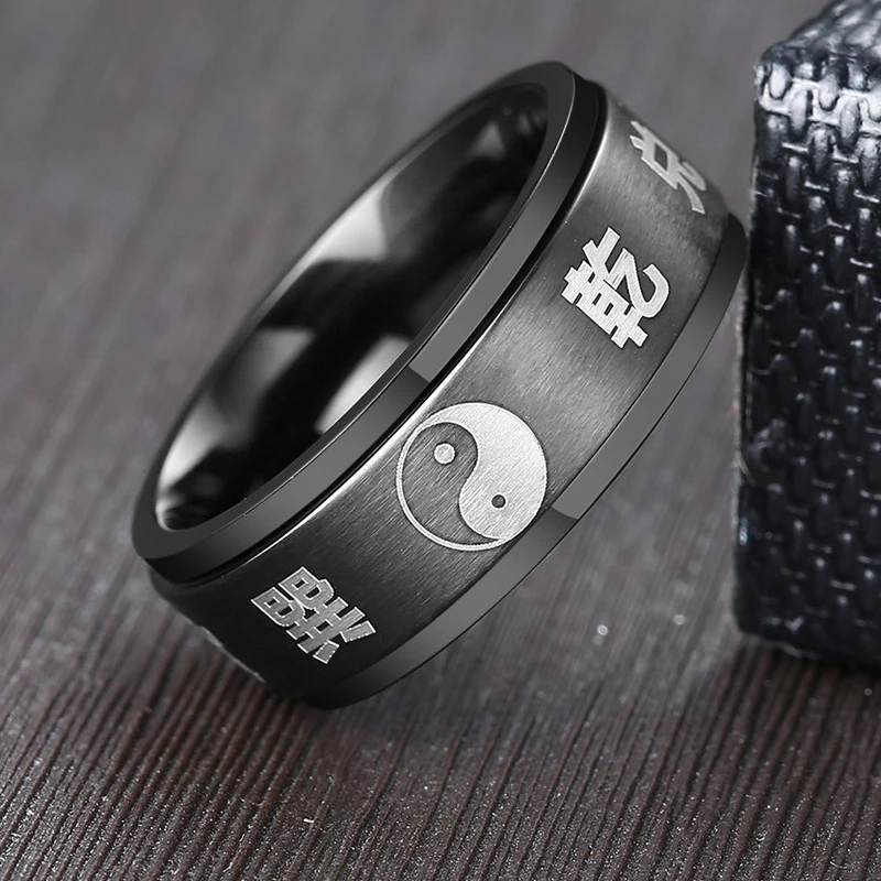 Мужской Спиннер 8 мм из нержавеющей стали Инь-Ян, кольцо-Спиннер Ба-Гуа Фэн-шуй, восемь треграмм