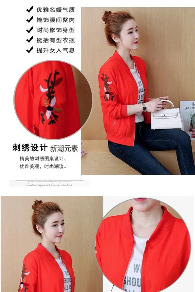 Элегантная бейсбольная форма на молнии с вышивкой; куртка-бомбер для женщин в Корейском стиле; Повседневная Базовая уличная тонкая куртка