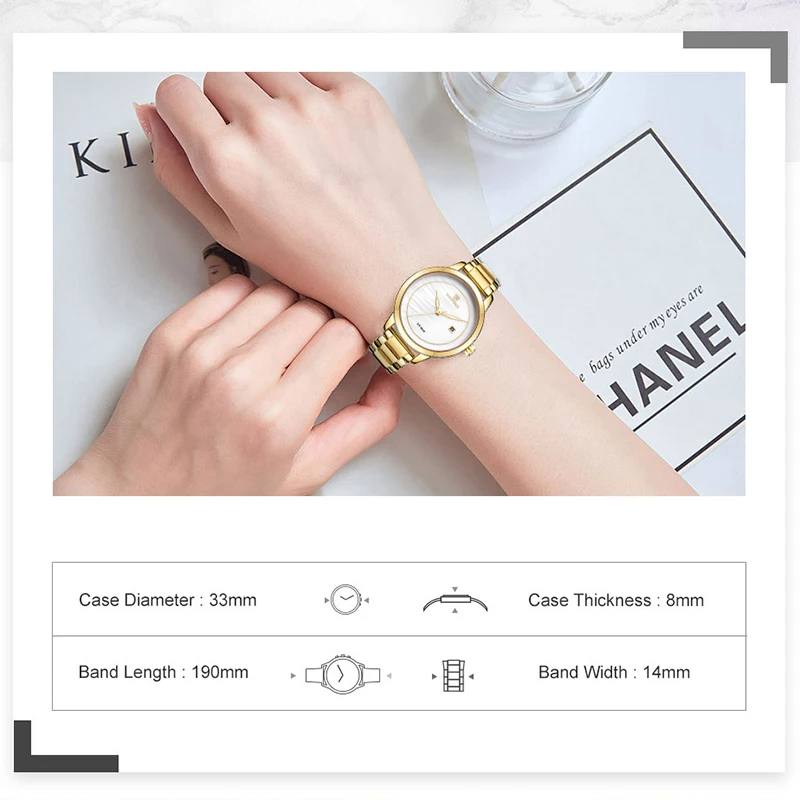 2019 NAVIFORCE 5008 Новое поступление: NAVIFORCE женские часы из нержавеющей стали женские наручные часы модные водонепроницаемые женские часы простые синие женские часы Relogio Feminino Товар: NAVIFORCE роскошные женские часы из розового золота Тип часов: женские часы/Женские часы/нарядные часы/кварцевые часы/модные часы/подарок для жены/Relogio Feminino Идеально подходит для всех видов моды, на каждый день, для вечеринок или для ежедневного использования. Описание продукта: 100% Новинка с биркой и высоким качеством Модные Повседневные дизайнерские женские часы для отдыха Водонепроницаемость (ручная Стирка) Дата Аналоговый дисплей Ремешок из нержавеющей стали высокого качества Технические характеристики Материал корпуса: сплав Диаметр корпуса: 33 мм Толщина корпуса: 8 мм Материал браслета: браслет из нержавеющей стали Длина ремешка: 190 мм (чехол входит в комплект) Ширина ремешка: 14 мм Вес: 57 г Что входит в комплект 100% NAVIFORCE брендовые новые женские часы 1 x аналоговые повседневные женские часы с датой