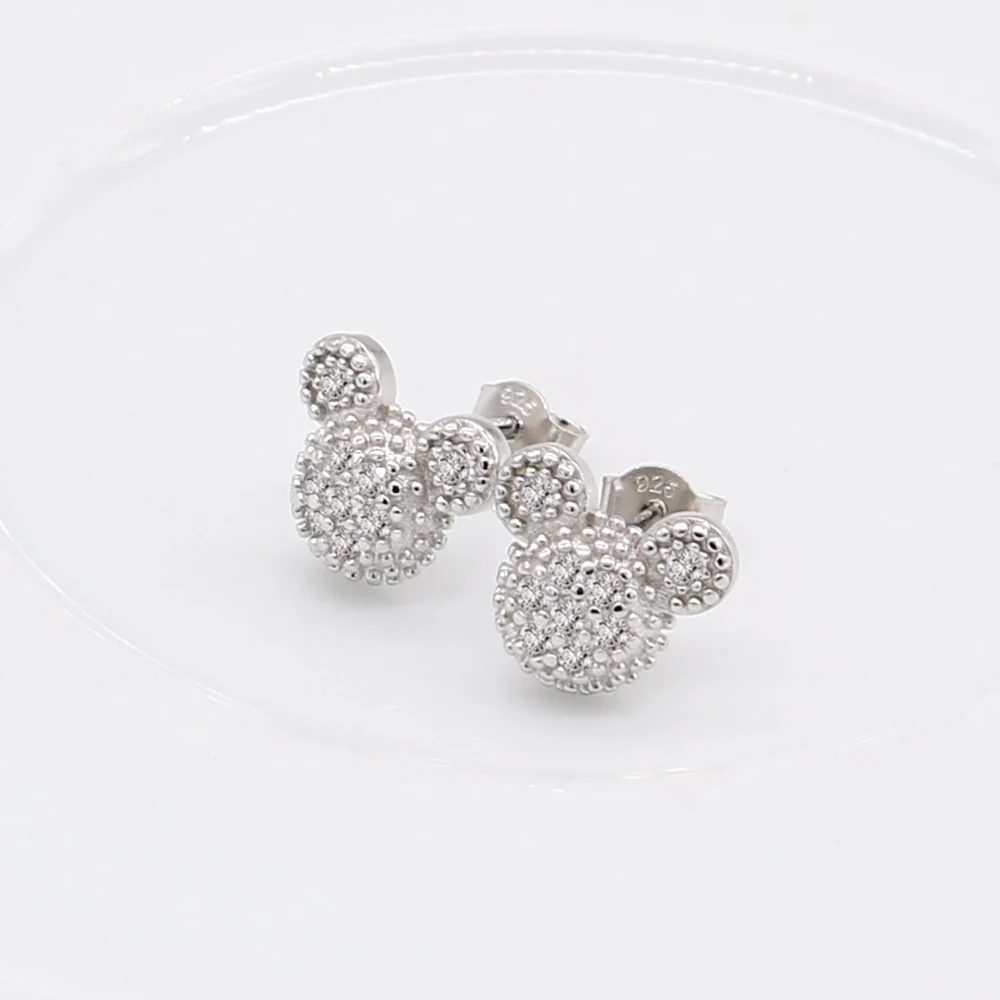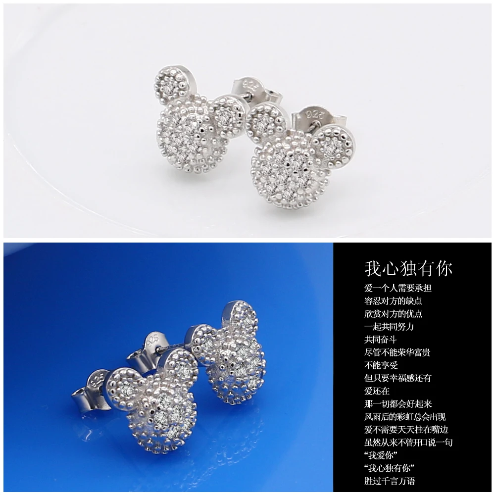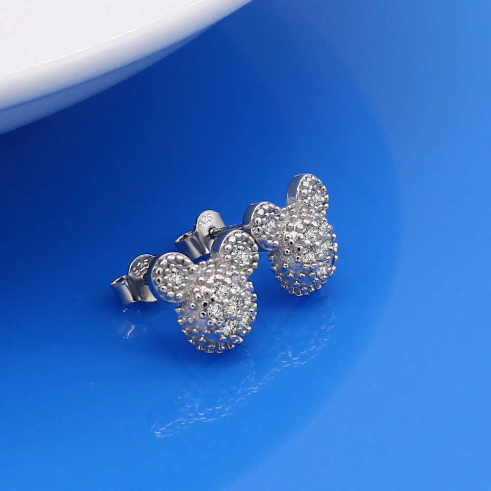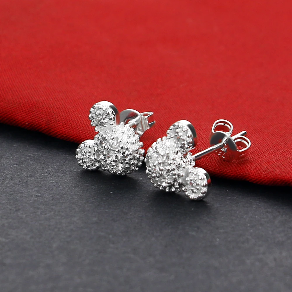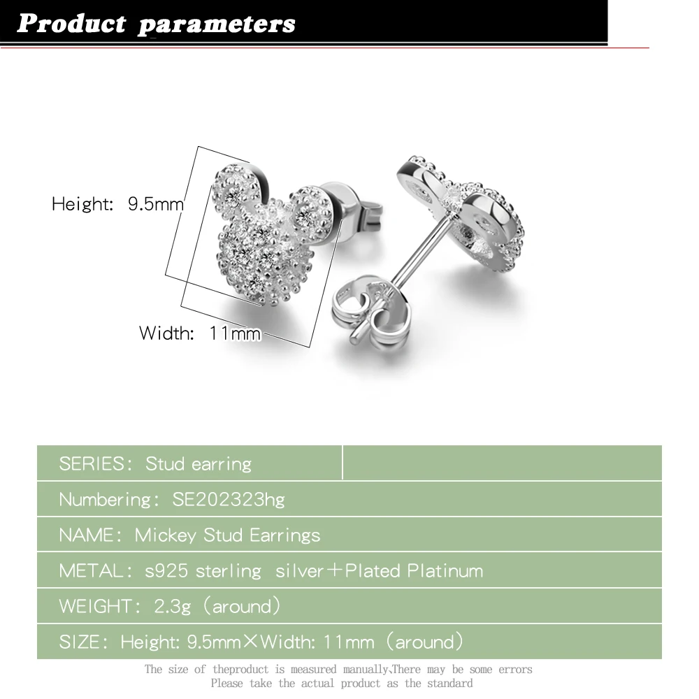 Женские серьги-гвоздики из серебра 925 пробы с изображением Микки и Минни