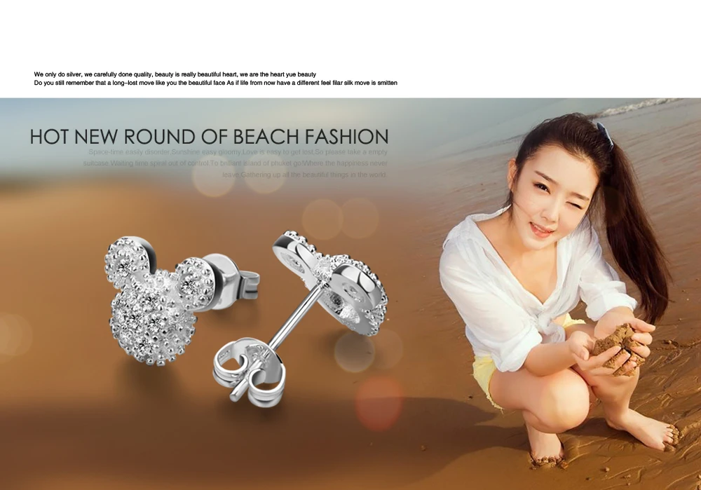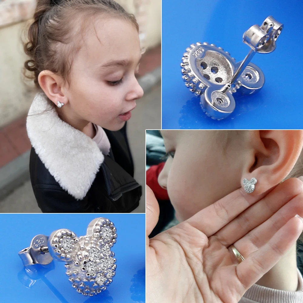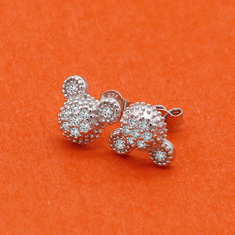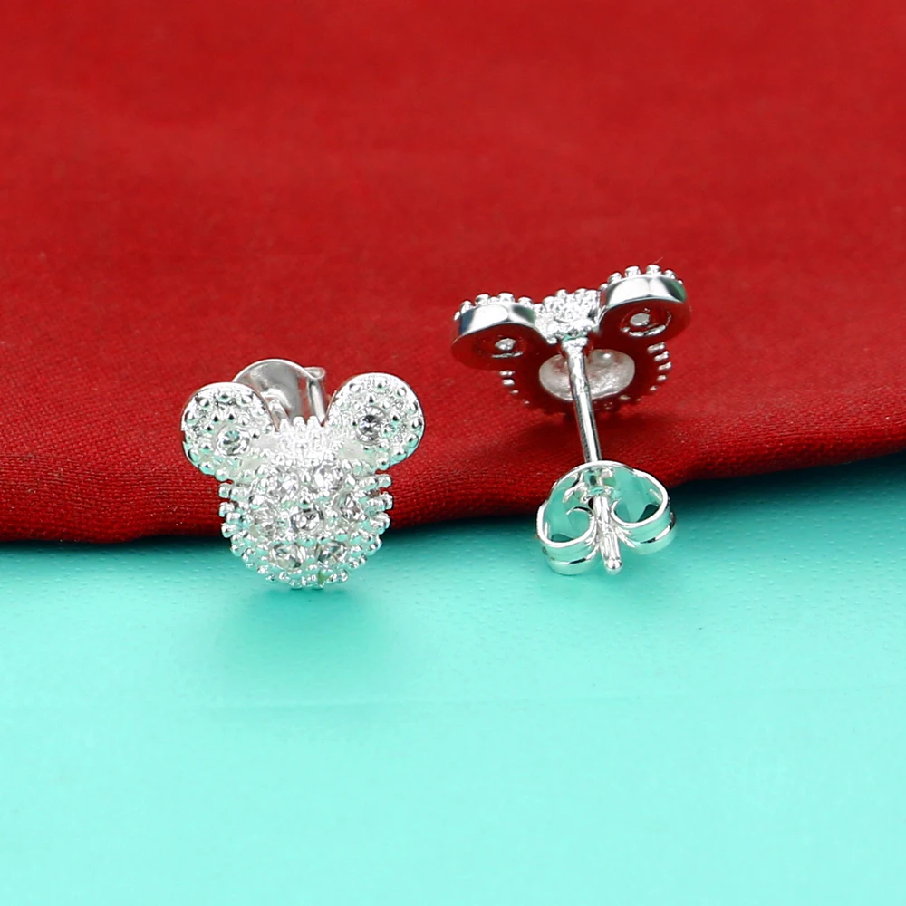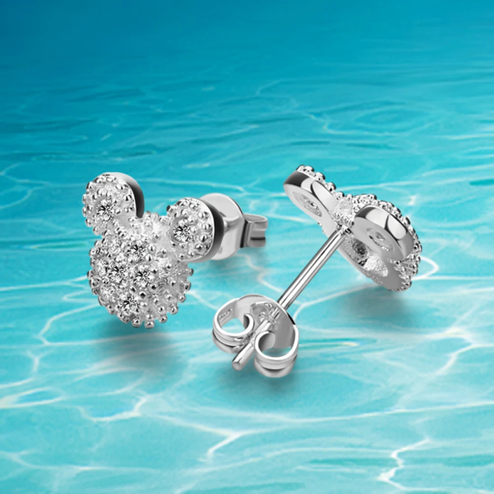 Женские серьги-гвоздики из серебра 925 пробы с изображением Микки и Минни