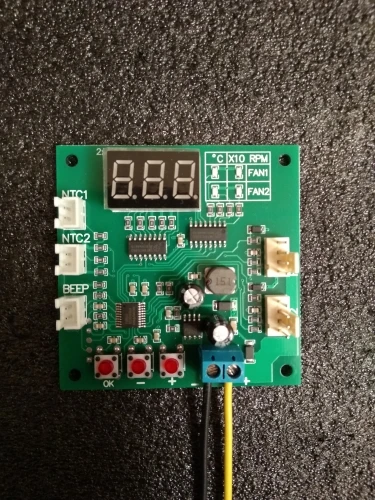 4. Можно установить функцию выключения сигнала тревоги (внешний звуковой сигнал переменного тока, выключение по умолчанию). Параметры производительности: Рабочее напряжение: DC8-60V (должно быть равно напряжению вентилятора, если вы используете вентилятор 12 В питание 24 В будет сжигать вентилятор) Рабочий ток: управление Панель рабочий ток 35mA (12V) 22mA (24V) Управление возможности: Нет ограничений по току вентилятора, но бортовой вентилятор не должен превышать ток 3A, используйте больший вентилятор тока, Пожалуйста, подключите шнур питания вентилятора непосредственно к основному источнику питания! Диапазон выходного сигнала управления: 10% -100 (это только выходной диапазон сигнала, фактическая ситуация зависит от производительности вентилятора) характеристики температурного зонда: NTC 10K B = 39503,25 после родов для обновленная версия: Температура измерения:-9,9 ° до 99,9 градусов по Цельсию допустима погрешность примерно в 2 ° (1% зонд 70 градусов по Цельсию) 3 ° (70 градусов Цельсия выше) Диапазон температур: температура ускорения 5-94 °, полная температура скорости 10-99 ° измерение скорости: 10-9990 об/мин, Больше этой скорости всегда отображается 999, разрешение 10 об/мин, дисплей * 10 об/мин. Стоп-сигнал скорость: менее 375rpmCircuit Размер: 65 мм * 65 мм * 15 мм, позиционирование Отверстие центр расстояние 56 мм * 56 мм диаметр 3,2 мм