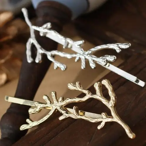 Модные индивидуальные золотые и серебряные заколки для волос в виде дерева, женские заколки для волос в форме ветки из сплава, милые женские оленьи рогатки, Металлические Боковые зажимы, аксессуары для волос