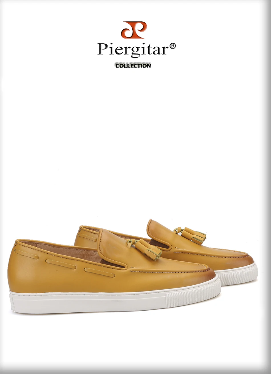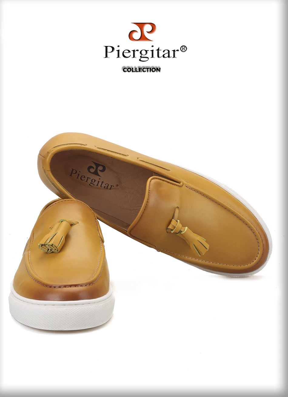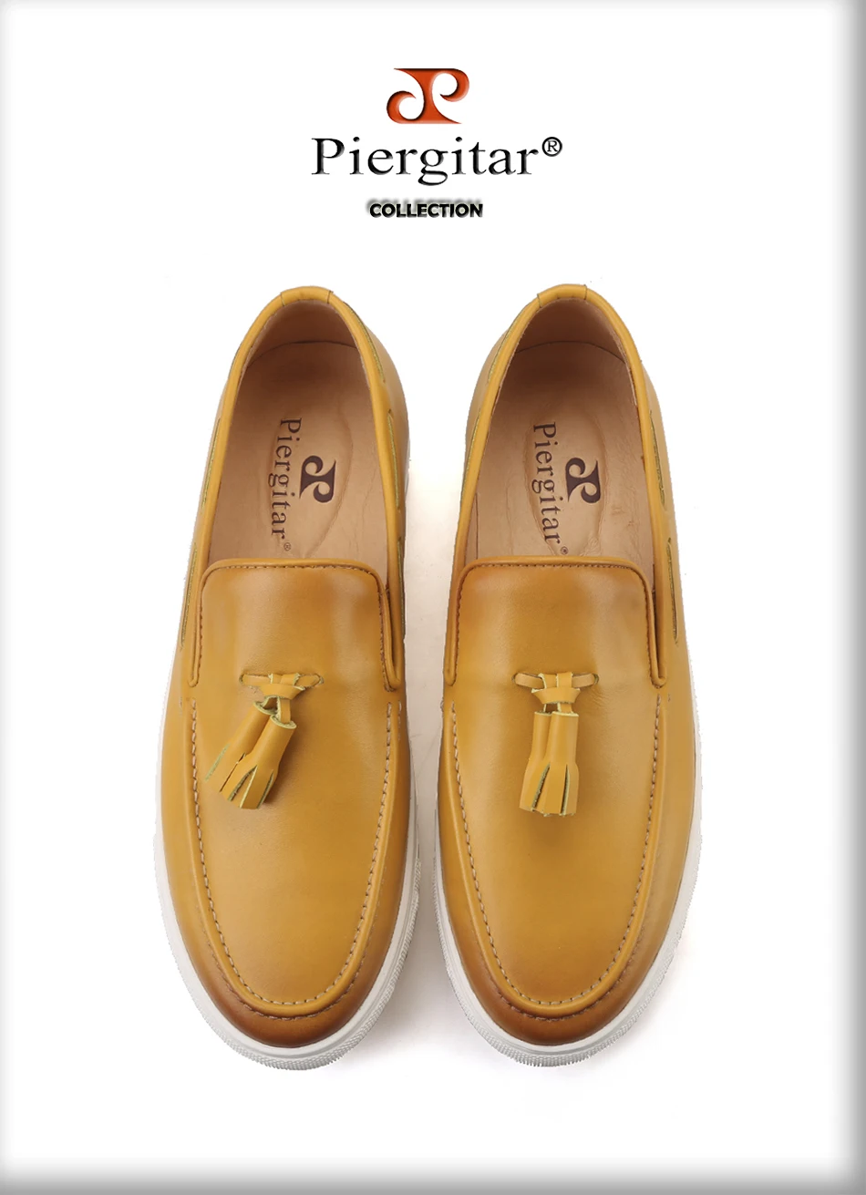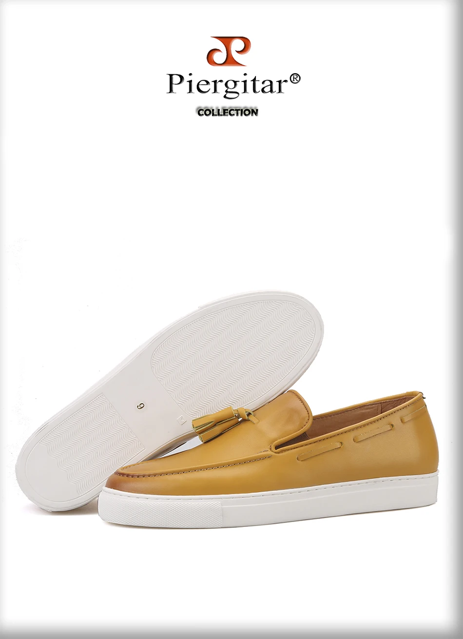 Кроссовки мужские Piergitar, желтые, из коровьей кожи, с белой подошвой, спортивный стиль, 2019